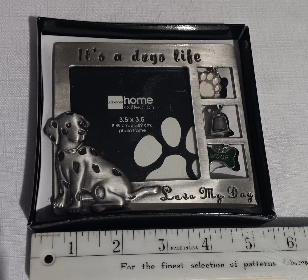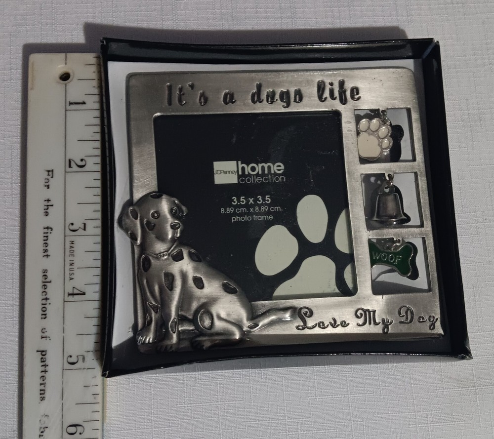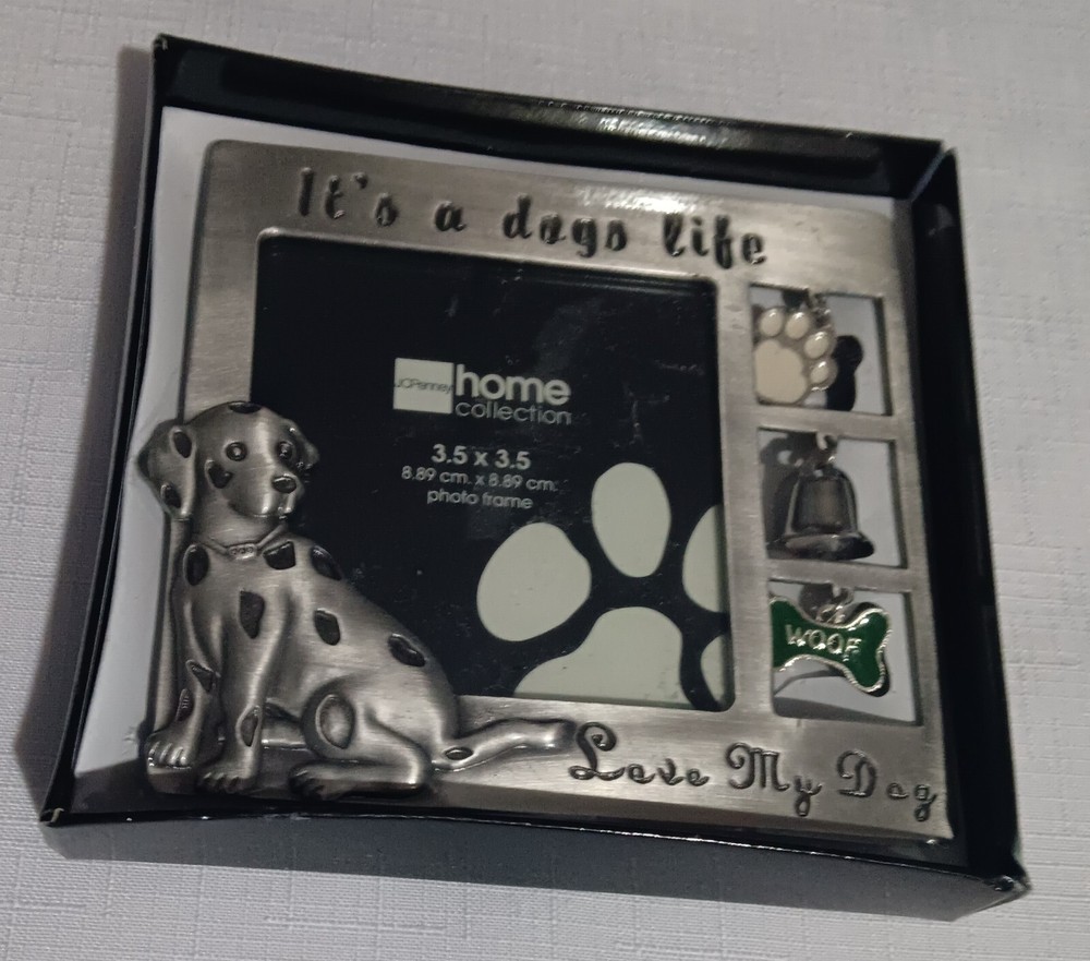 JC Penney Pewter Dog Picture Frame holds a 3.5 x 3.5 photo - Sure to please any dog lover. Dogs Life- Love my Dog. New in box. If you have any questions, please contact me.