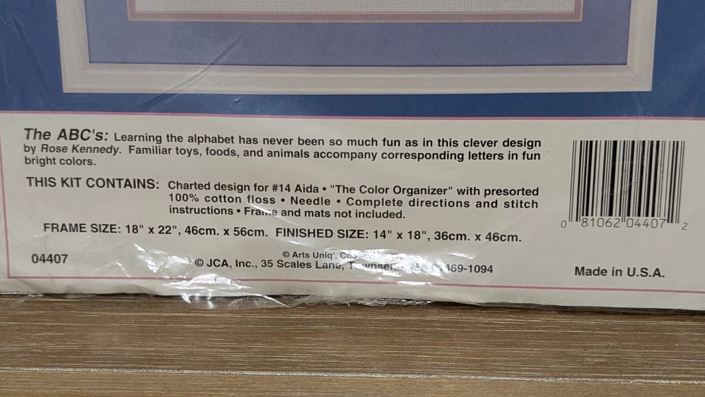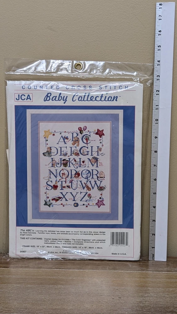 JCA Counted Cross Stitch Kit Baby Collection The ABC's Alphabet Sampler 14x18 **SEE PHOTOS! This item is New & Sealed in its original package! From a pet-free & smoke-free home. Shipped quickly and carefully from Kansas! Thank you for looking 😊 -------------------------
