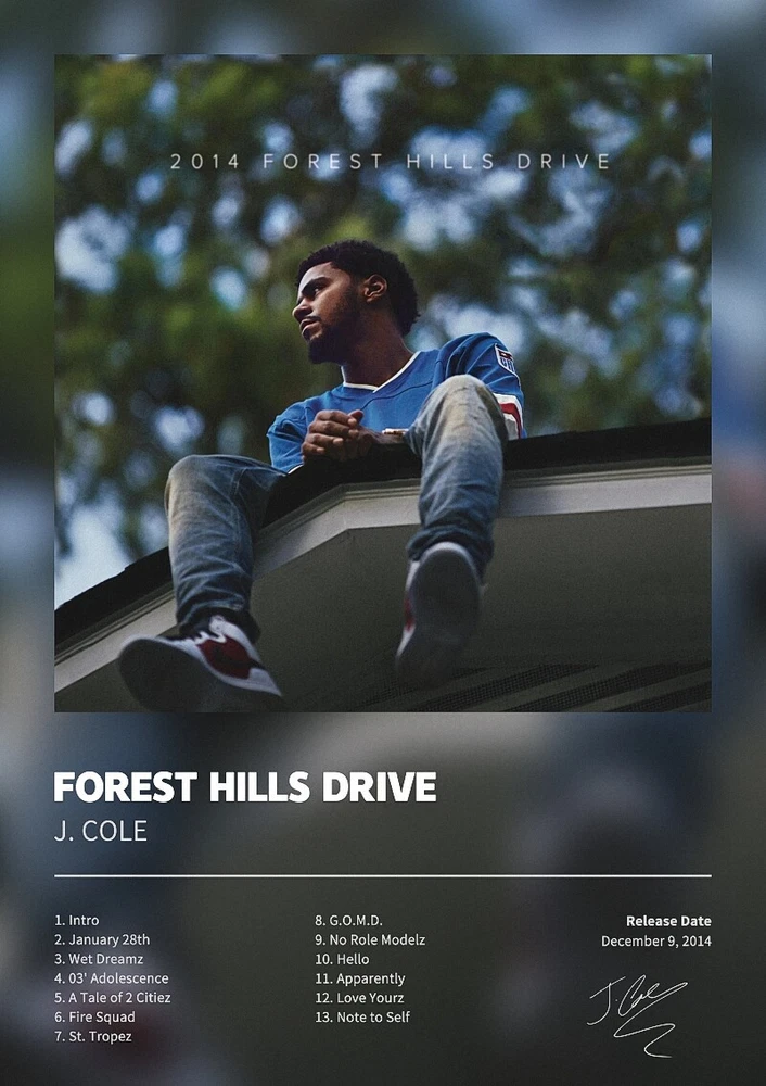 J.Cole - 2014 Forest Hills Drive Album Poster 24x36" Custom Music Canvas Poster