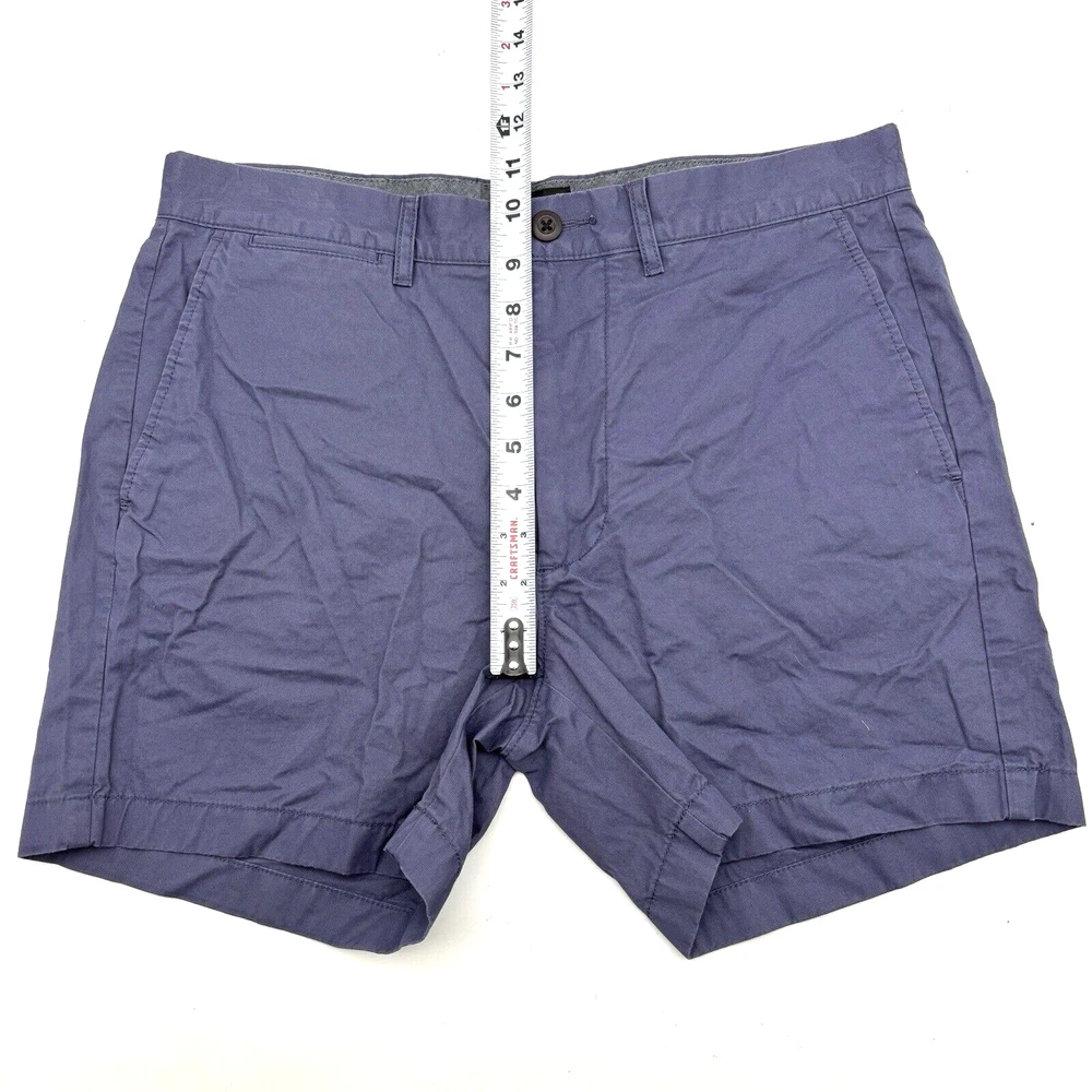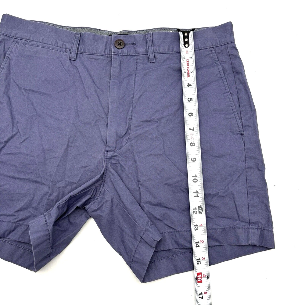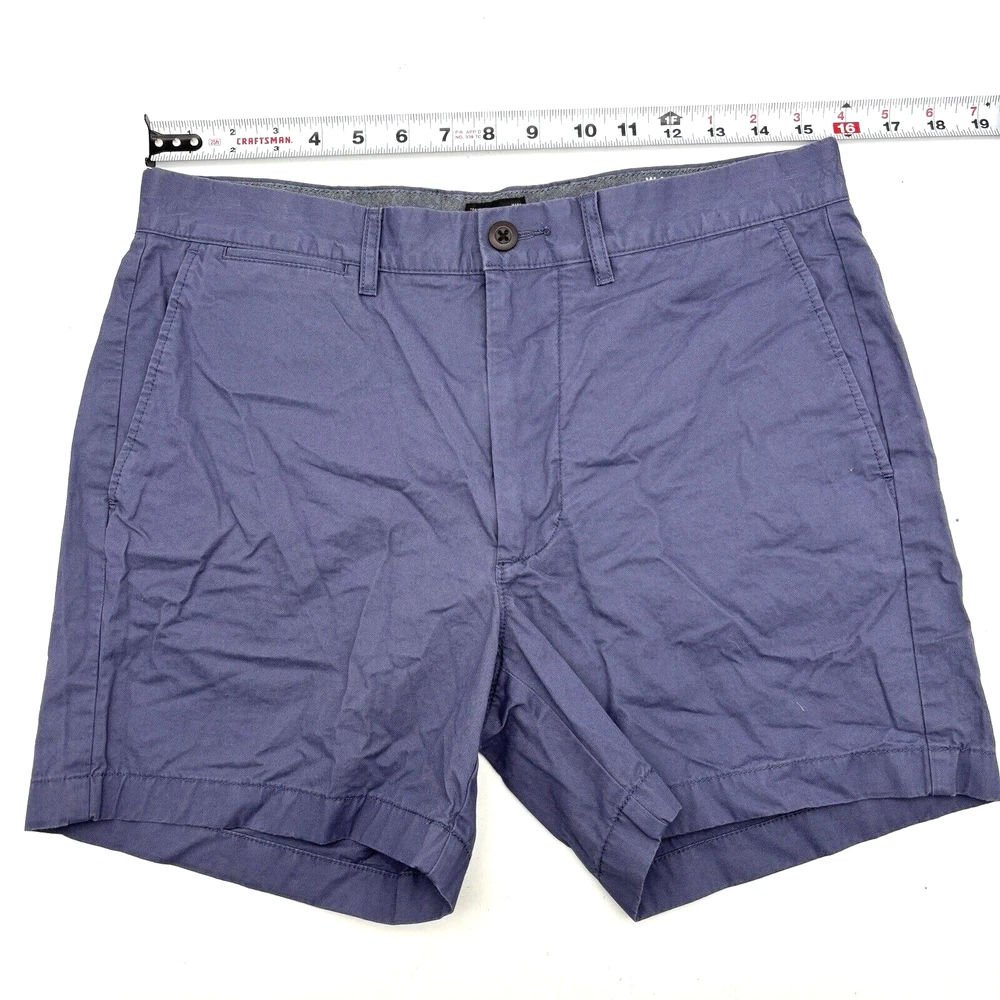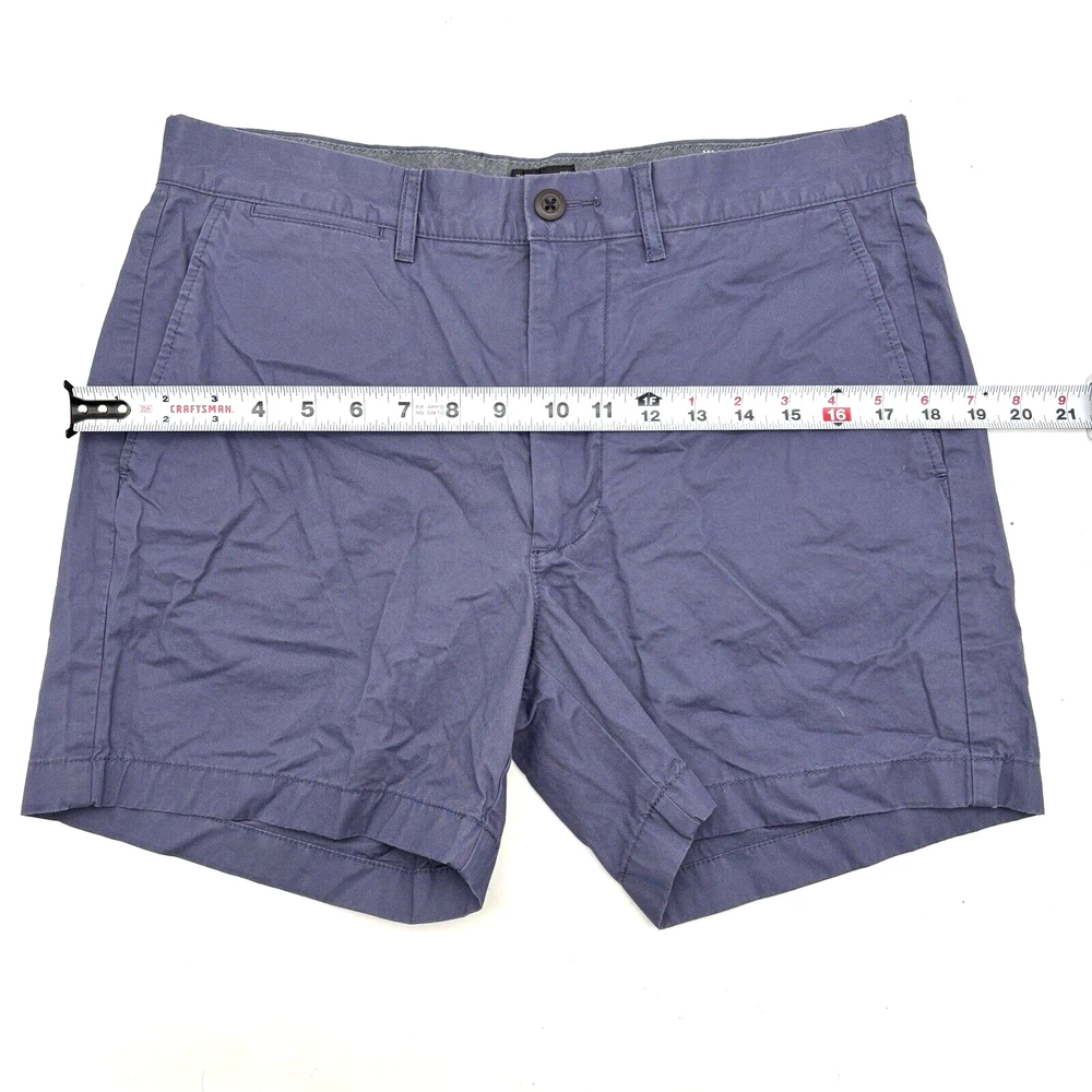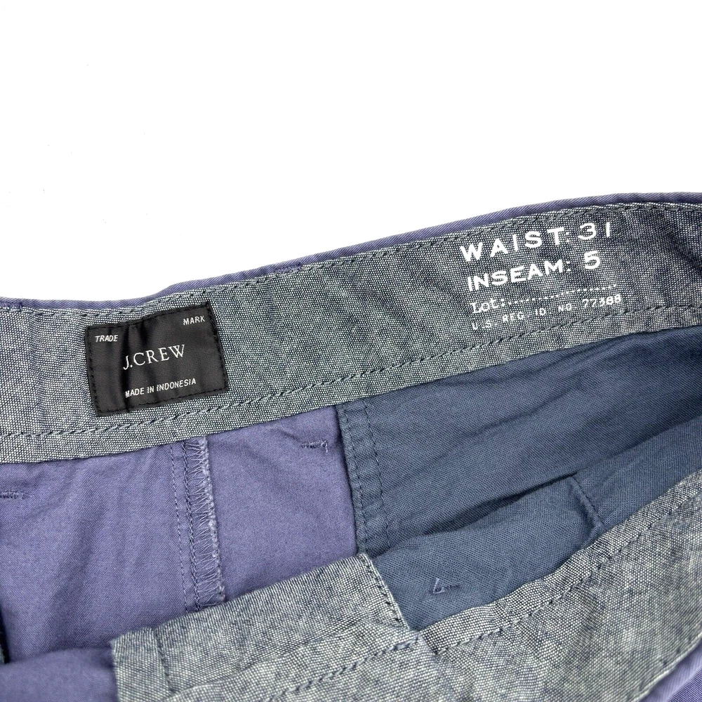 J.Crew Re-Imagined Chino Shorts 98% Cotton, 2% Elastane Blue Mid Rise Zip and Button Closure Slash Pockets on Front Button Pockets on Back Belt Loops Very minimal stretch! Size 31 Refer to measurements below to ensure accurate fit before purchase! 10.5" rise 15.5" waist (31" circumference) 19.5" hips 5" inseam 10.5" thighs 14" full length from waist to hem Measurements made with garment laying flat. Excellent pre owned condition. Very gently owned, hardly worn. Very wrinkled, need to be ironed. No rips, tears, stains, holes or other notable flaws. Clean and from a smoke free home.