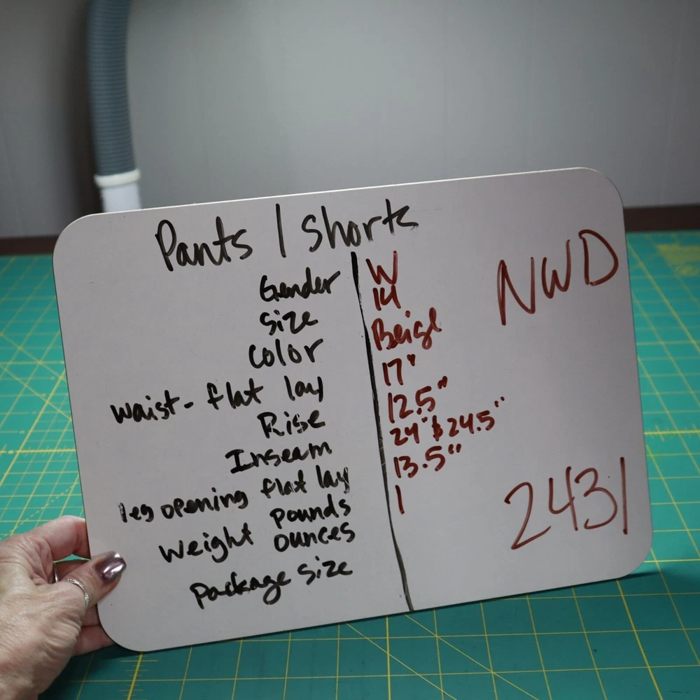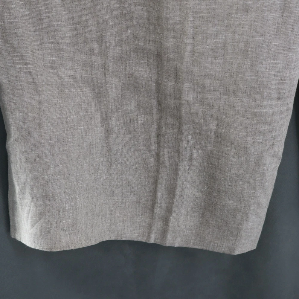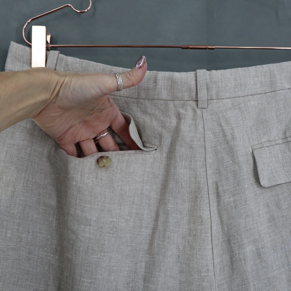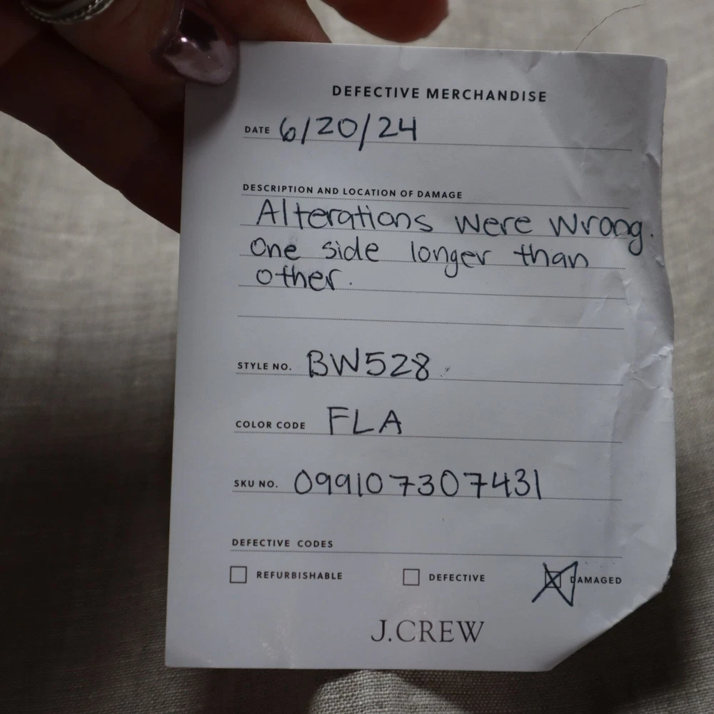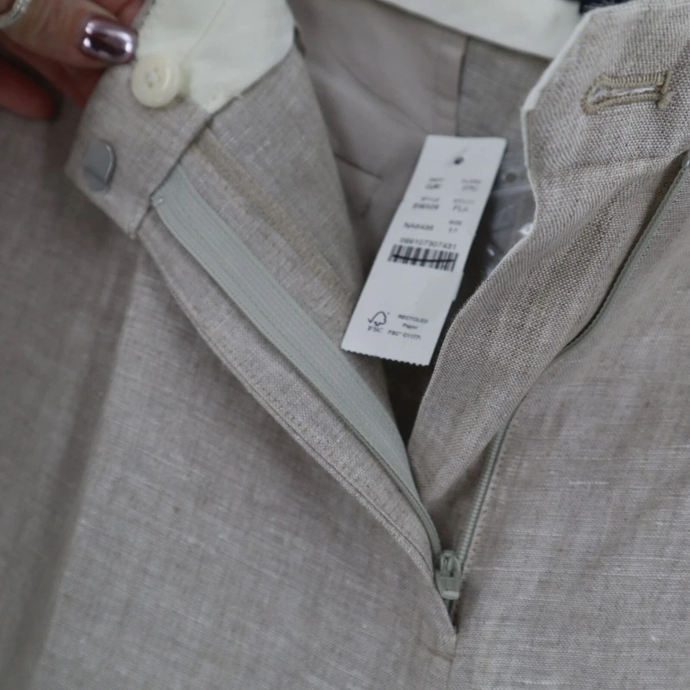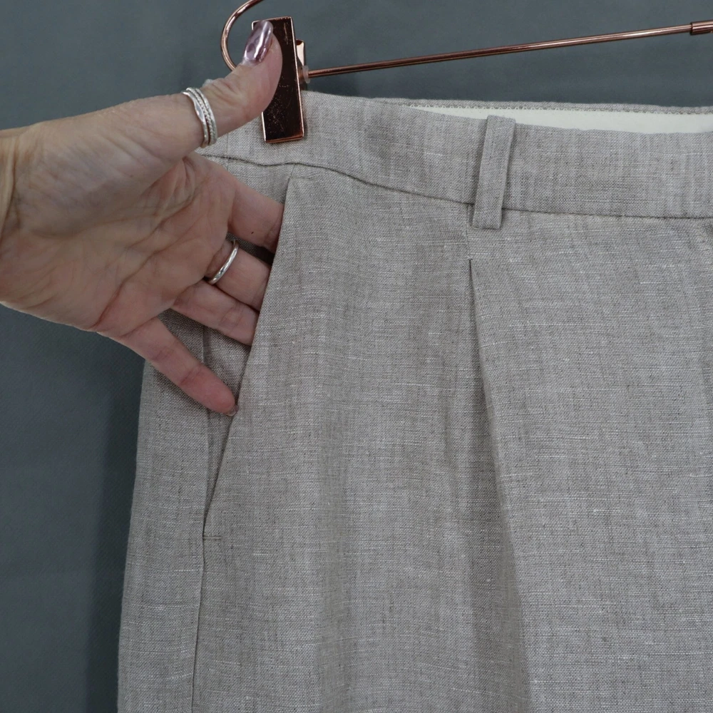 Material: Linen Front Type: Pleated Rise: High (Greater than 10.5 in) Department: Women Leg Style: Wide-Leg Handmade: No Pattern: Solid Vintage: No Personalize: No Fit: Regular Closure: Button, Zip Country/Region of Manufacture: Philippines Season: Fall, Spring, Summer Type: Pants Theme: Beach, Bohemian, City, Nautical, Preppy Seller Notes: “One of the legs has been hemmed to 1/2 inch longer than the other and will need to be re-hemmed.” Brand: J.CREW Size: 14 Accents: Button, Pleated Occasion: Casual, Travel, Workwear Size Type: Regular Garment Care: Machine Washable Features: Breathable, Comfort, Easy Care, Moisture Wicking, Pockets Color: Beige Waist Size: 34 in Inseam: 24.5 in Style: Dress Pants
