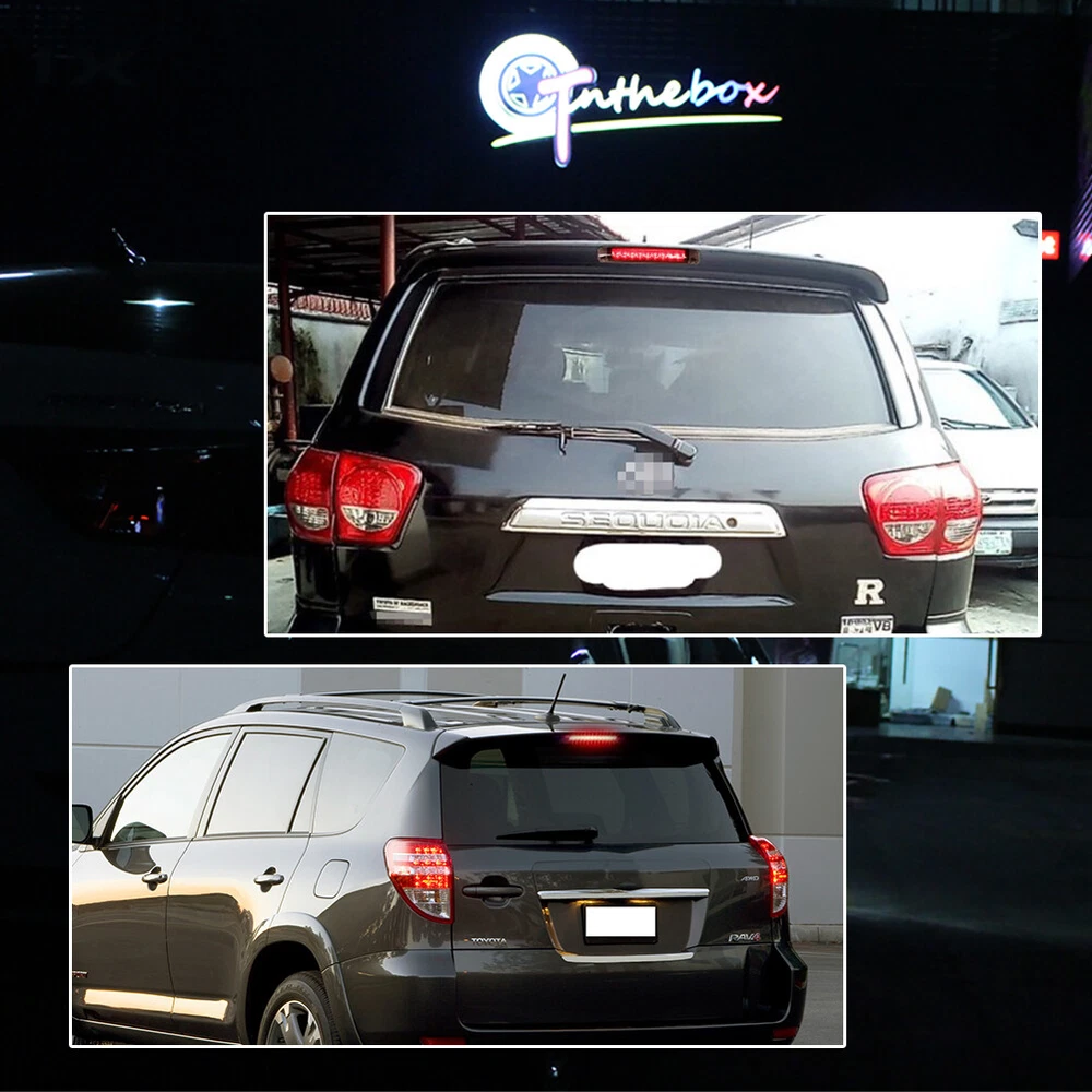JDM Red Lens 9LED 3rd Brake Light Assy For Toyota Crolla Sequoia Highlander RAV4 JDM Red Lens 9LED 3rd Brake Light Assy For Toyota Crolla Sequoia Highlander RAV4 Wanna something different for your Toyota? You should try this red lens 3rd brake light kit. This page features this OE-style red lens high mount 3rd brake light for 2009-2013 Corolla S with Spoiler ONLY 2008-2020 Sequoia 2008-2013 Highlander 2006-2012 RAV4 Please note: if you have 2009-2013 Corolla, please make sure it comes with the trunk-mounted spoiler in order to use this product. This red lens 3rd brake light assembly is powered by 9-piece of brilliant red LED diodes and will directly replace the original 4-LED only clear lens 3rd brake. There is no modification required, simply unbolt the original 3rd brake lamp and directly replace back with this red one. The Toyota red 3rd brake also comes with an optional wire which you can leave it alone, or you can also choose to connect it to your stock taillamp's positive and let your red 3rd brake function as rear fog light or tail running light. ☛Feature: 100% Brand new and quality Red lens Color: Red Good for 2009-2013 Toyota Corolla S with Spoiler ONLY, 2008-2020 Toyota Sequoia, 2008-2013 Toyota Highlander and 2006-2012 Toyota RAV4 D irect replace the OEM 4-LED only clear 3rd brake lamp (OEM part # 81570-0T010, 81570-42071) DOT SAE approved Replace the original clear lens with incandescent bulb lamps Great way to upgrade your car with better lighting capabilities ☛Specification: T ype of Lights: LED 3rd brake light assembly Material: Durable Black ABS Housing Waterproof: IP67 Lens color: Red Light color: Red Installation position: 3 rd brake light Ultrasonically sealed Work Temperature:-40 - 60 centigrade degree Voltage:12-24V DC; Power: 4W L ow power consumption; Quick Instant Start-Up time ☛Fit for: 2009-2013 Corolla S with Spoiler ONLY 2008-2020 Sequoia 2008-2013 Highlander 2006-2012 RAV4 Please make sure you have available space in your car for these lights to fit before placing order. ☛Package included: 1PC Red LED 3 rd brake light ☛Installation: Direct plug-N-play for the 3rd brake light feature (also comes with an optional wire to enable rear fog or tail running light feature, if you choose not to use it, simply not connect this wire at all) Note: Professional installation is highly recommended! Payment Delivery details Terms of sales Contact us Feedback Payment We only accept payment via PayPal. Please make sure shipping address on your PayPal account is correct and up-to-date. Payment from bank account and all major credit cards will be accepted through secure payment processor PayPal. Delivery details Item will be shipped to buyer's PayPal shipping address within 1 business day after clear payment received. Tracking number of domestic orders will show up on buyer's eBay account once order is shipped. Please make sure shipping address on your PayPal account is correct & up-to-date. All of our items are shipped from our GA, USA warehous e. * Please note that post office doesn't process parcel on Saturday, Sunday & public holidays. Terms of sales Warranty policy: This item comes with 60 day exchange (replacement) warranty. Buyer could choose exchange to same item or apply store credit to other items in our store. Exchange will be processed after we received return. We only accept refund request for un-opened or un-used item, buyer has to return item in original condition and retail package within 30 day. 20% restocking fee will be deducted for all refund cases. Refund will be processed after we received return. Buyer is responsible for return shipping cost of ALL exchange/refund cases. We will cover shipping cost when sending out replacement. Products that are modified/customized are NOT covered by our return/exchange policy. Compatibility issue: Please check actual stock bulb model & housing size before purchasing replacement bulbs. Compatibility list on eBay listing is not a complete list and it is a known issue that there are errors on it. If you encounter model/functional compatibility issue, please contact us for assistance. We will help you exchange to compatible item (if available). We only accept refund request if we don't carry compatible item. 20% restocking fee will be deducted for ALL refund cases. Buyer is responsible for both return and resend shipping cost when exchanging an item with compatibility issue. We will cover resend shipping cost if compatibility problem is directly caused by incorrect information on listing. Buyer will be charged for price difference when upgrading to a more expensive model. Contact us Should you have any question/concern regarding our item/auction, please feel free to send us an eBay message. We will answer your question in a timely manner (within 12 hours in most cases). Reply will show up on your eBay account and goes to the email address associated with your eBay account. If you don't receive our reply within 2 business day, please kindly check your junk-mail box. If you are interested in bulk order, please contact us for a quote. Feedback We appreciate your business and strived to improve our customer service and our commitment to quality. We will leave a positive feedback immediately after payment is received. We appreciate a positive feedback as much as you do. If for some reason there is any issue with the purchase, please contact us prior to leaving feedback, and we will be glad to work with you to have it resolved. On Nov 26, 2025 at 03:57:11 PST, seller added the following information: