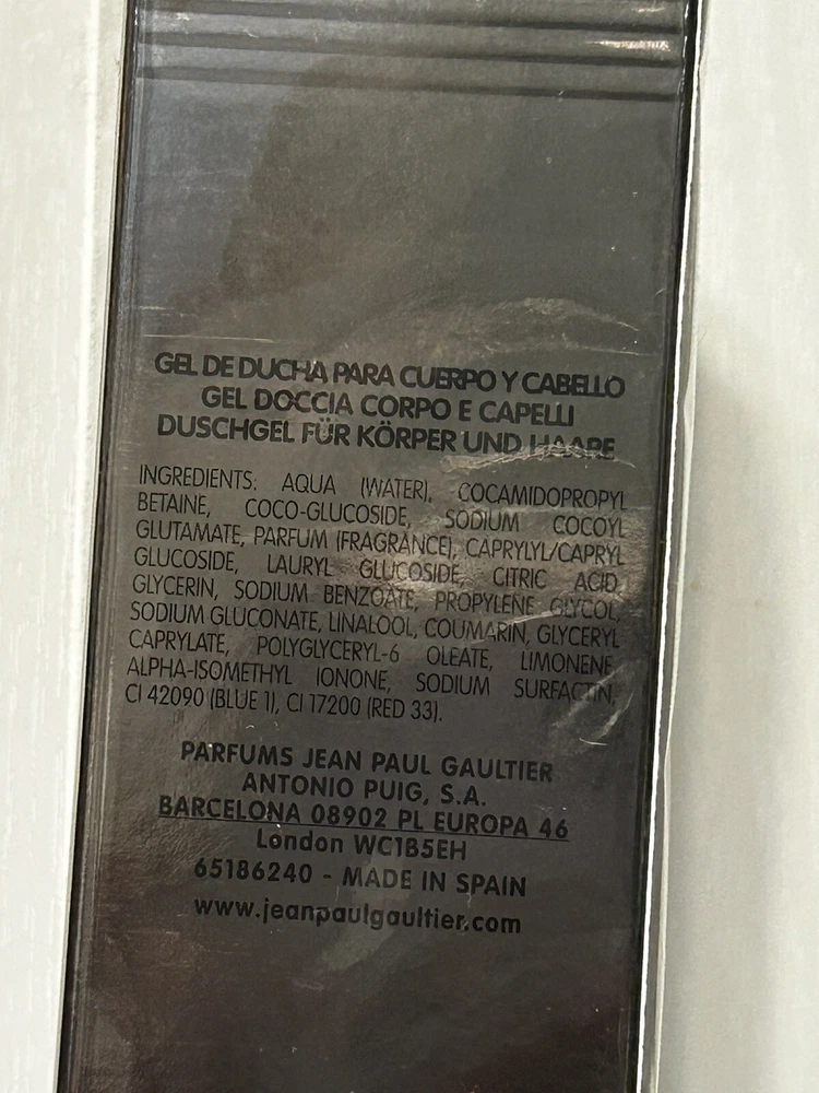 Brand: Jean Paul Gaultier Formulation: Gel Skin Type: All Skin Types Type: Shower Gel Ingredients: Glycerin Country/Region of Manufacture: France gtin13: 8435415055826 Body Area: Body MPN: 026212 Volume: 2.5 fl oz Color: Clear Features: Animal Cruelty-Free, Hydrating, Fresh Department: Men UPC: 8435415055826 Scent: Le Male Size: Regular Product Line: Jean Paul Gaultier