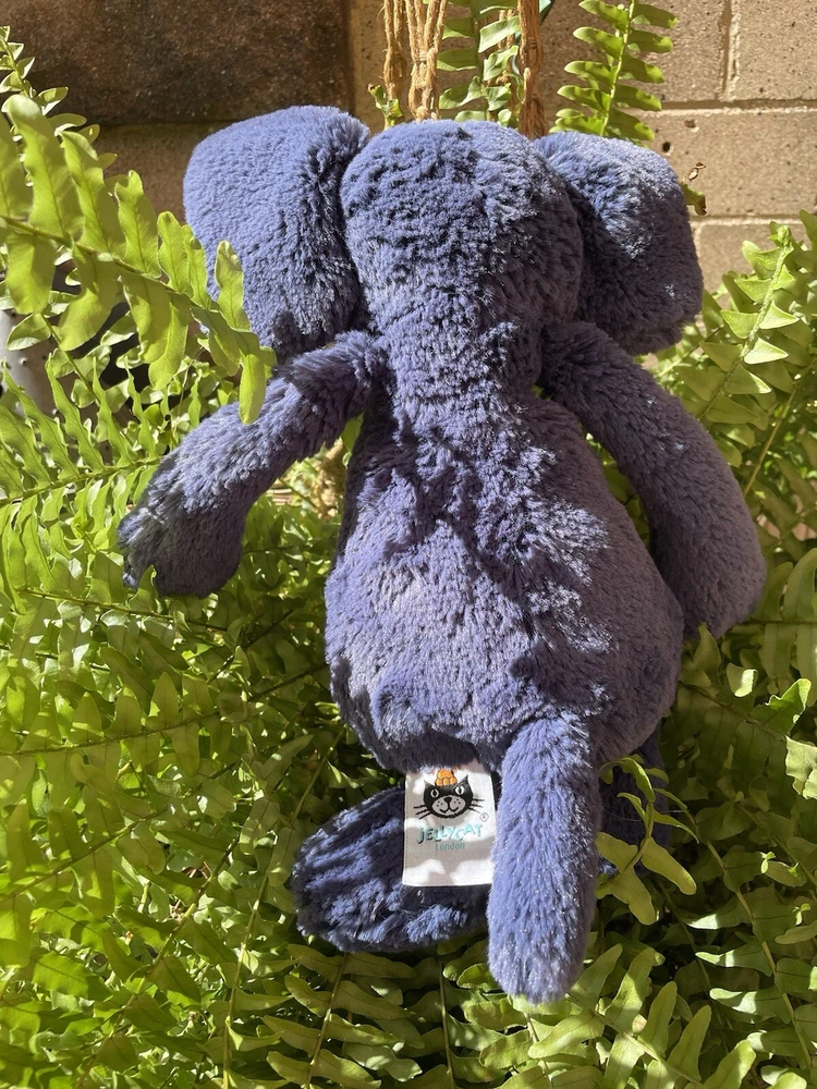 Soft and sweet JellyCat blue elephant plush. In good condition and very lovable.