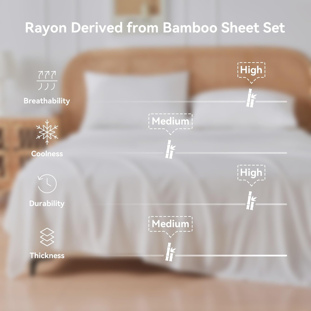 JELLYMONI 4 Pieces Cooling Queen Sheets Set, Rayon Derived From Bamboo Sheet Set Silky Texture: The cooling sheet is made of 35% rayon derived from bamboo and 65% polyester fiber with a unique twill weave, making it stronger than cotton, smooth like silk, cool to the touch, and free of wrinkles. Natural Cool:This rayon derived from bamboo sheet set has natural cool feeling and temperature-regulating properties that very friendly for hot sleepers ,providing a peaceful and refreshing sleep, keeping you refreshed all year round. Extra Sturdy: Made with premium quality and neat stitching at the seams for enhanced durability, these cooling sheets offer long-lasting comfort and can withstand washes without hardening, pilling, or wrinkling. Easy to Care: These cool sheets set for hot sleepers are Standard 100 OEKO-TEX certified for high safety standards. Simply machine wash them in cold water on a gentle cycle for a like-new restoration. What Include:4 piece king cooling sheet set includes 1 flat sheet (105 x 102 inches),1 fitted sheet (78 x80 x16 inches), 2 pillow cases (20 x 40 inches) Shipping We offer FREE shipping on all orders! We ship within Three business days of payment, usually sooner. We use a selection of shipping services such as UPS, FedEx, USPS etc. We only ship to the lower 48 states, no APO/FPO addresses or PO Boxes allowed. Local pickups and combined shipping options are not provided at this time. Return You can return a product for up to 30 days from the date you purchased it. Any product you return must be in the same condition you received it and in the original packaging. Please keep the receipt. Payment We accept payment by any of the following methods: PayPal Please pay as soon as possible after winning an auction, as that will allow us to post your item to you sooner! Feedback Customer satisfaction is very important to us. If you have any problem with your order, please contact us and we will do our best to make you satisfied. Contact Us If you have any queries, please contact us via ebay. We usually respond within 24 hours on weekdays. Please visit our eBay store to check out other items for sale! Thank you for shopping at our store.