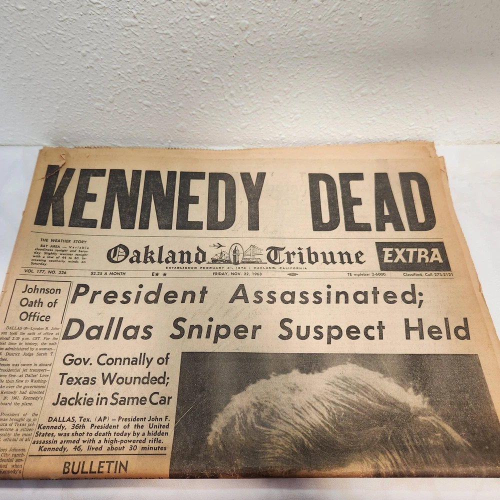 Lot of 4, two papers and two magazines, see description. San Francisco Chronicles, Nov. 23, 1963 Oakland Tribune, Nov. 22, 1963 Life Magazine, 1963 Saturday Post Magazine, Dec. 1963 Stored in smoke free environment since receiving. All orders ship within 2 business days. Thanks for looking.
