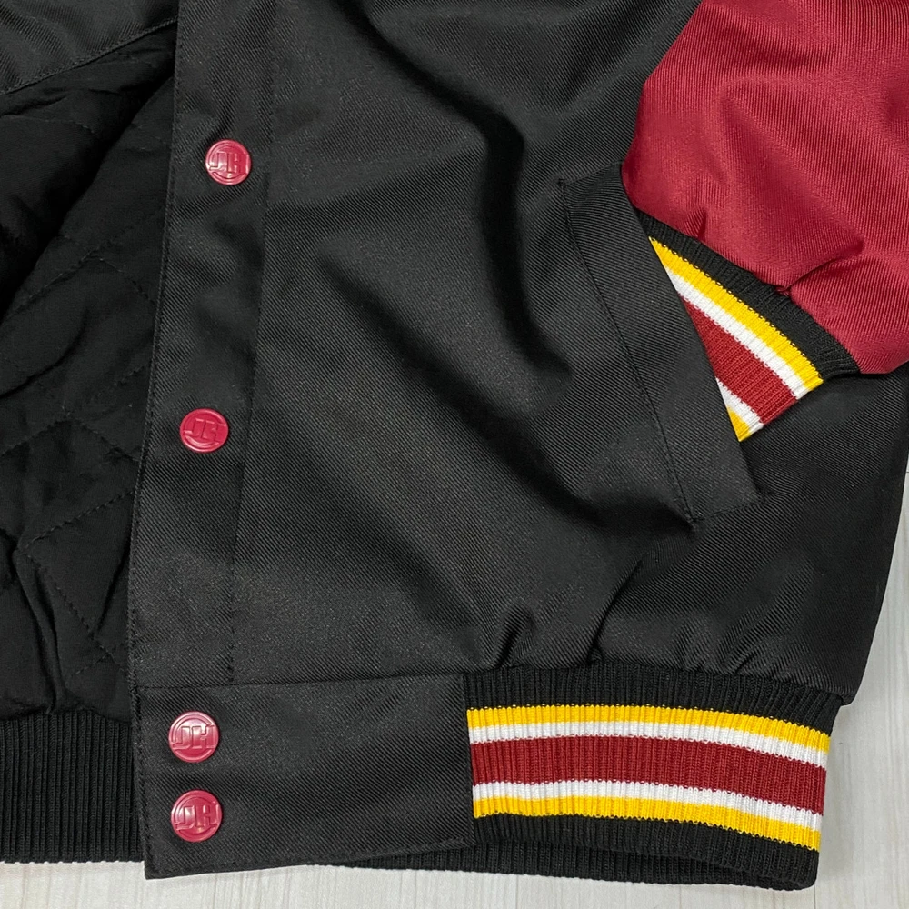 Country: Japan Garment Care: Dry Clean Recommended. Size: XL Closure: Full-Snap Fit: Regular Fit Insulation Material: Polyester Department: Men Size Type: Men's Vintage: Yes (Collector's Edition) Model: JH Design NFL Series Jacket/Coat Length: Hip-Length Collar Style: Ribbed Collar gtin13: NA Season: Spring/Autumn Style: NFL Team Jacket Fabric Type: Quilted Polyester Occasion: Casual / Outdoor / Sports UPC: NA Warmth Weight: Medium Color: Burgundy/Gold/Black Performance/Activity: Football / Streetwear / Outdoor Outer Shell Material: Polyester Lining Material: Polyester Product Line: Official NFL Merchandise Accents: Embroidered Patches Theme: Football / Sports / Collectible Type: Stadium Jacket Brand: JH Design Pattern: Solid with Team Branding