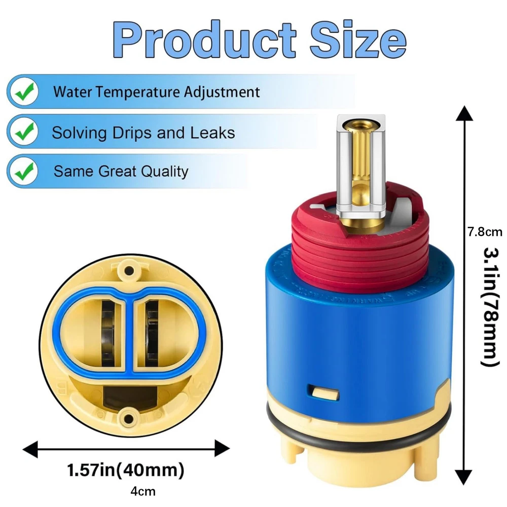 Features: 1. Perfect Compatibility: JH02BJ Shower Cartridge, For Tub And Shower Faucet Valve Compatible With For Zurn, For CFG, For Dominion, For Aqua Source Faucets, And Others Brand Faucets, Ensuring Tub And Shower Faucet Normal Use 2. Product Quality: JH02BJ Shower Cartridge, The Interior Is Made Of High-Quality Ceramic Material With Exceptional Hardness And Wear Resistance, And Made Of Durable External Plastic, Each Cartridge Is Rigorously Tested To Ensure Precise Quality And Prevent Water Leakage 3. Water Temperature And Pressure Control: JH02BJ Ceramic Pressure Balance Cartridge, Effectively Protects Against Sudden Fluctuations In Water Temperature And Enables Smooth And Precise Flow Control, Continuous And Comfortable Shower Experience 4. Easy To Install: Compare The Old Shower Cartridge To The New JH02BJ Cartridge To Be Sure, Then You Can Easily Install It And You Will Have A No More Dripping Faucet From Now On 5. Precision In Size: 40mm Wide, 78mm Tall Ceramic Pressure Balance Cartridge, The Correct Sizing And Compatibility, Resolve Issues With The Shower System, And Enjoy The Benefits Of A Perfectly Functioning Cartridge Specifications: Type: Pressure Balance Ceramic Shower Cartridge Condition: 100% New Material: Ceramic+Plastic OEM: JH02BJ Packaging Includes: 1* JH02BJ 40mm Shower Cartridge Replacement