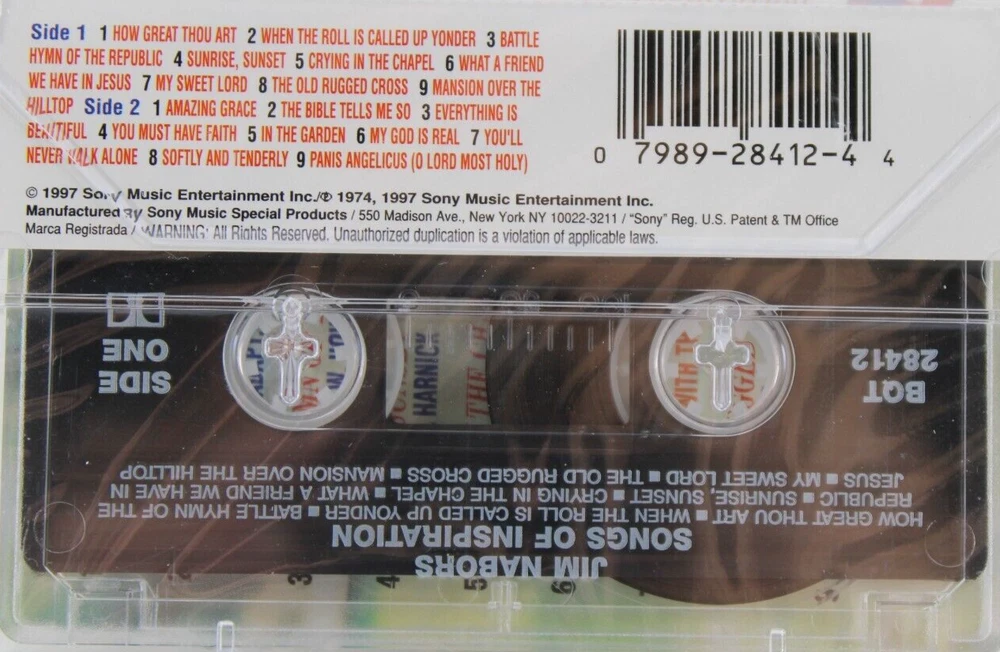 Language: English Release Title: SONGS OF INSPIRATION Genre: Gospel Country/Region of Manufacture: Unknown Catalog Number: DOES NOT APPLY Color: Multicolor UPC: 79892841244 Edition: COMPILATION Instrument: Drums, Guitar, Piano Run Time: FULL ALBUM Era: 1990s Case Condition: Near Mint (NM or M-) Style: Christian Inlay Condition: Near Mint (NM or M-) Artist: JIM NABORS gtin13: 79892841244 Features: Sealed Record Label: SONY Type: Album Case Type: Jewel Case: Standard Cassette Condition: Near Mint (NM or M-) Format: Cassette Release Year: 1997