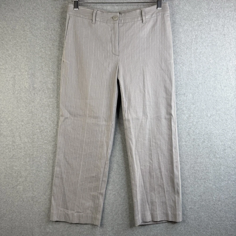 J.Jill Gray Minimalist Career Linen Stretch Crop Pinstripe Pants Size 6 Petite