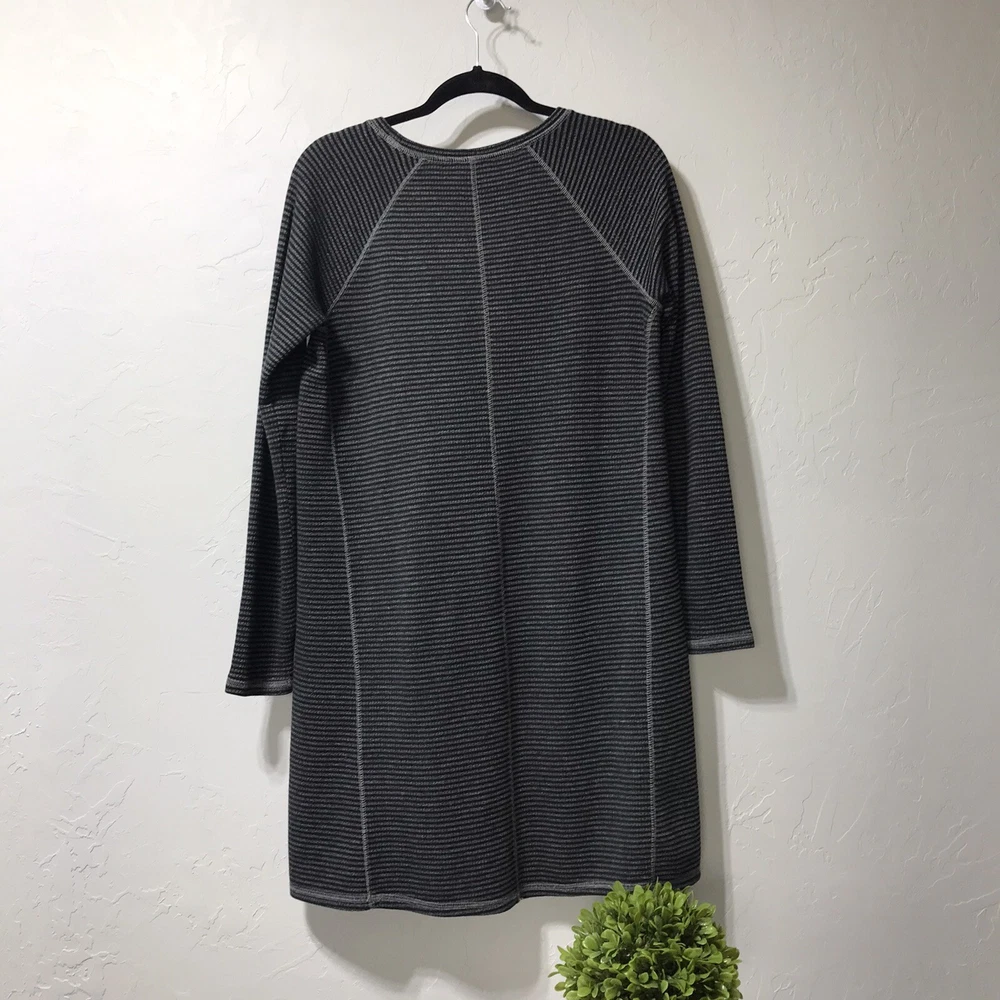 This stunning sweater dress from J. Jill is the perfect addition to your wardrobe. The dress features classic stripes, a crew neckline, and long sleeves, making it ideal for casual occasions. The pullover closure and knee-length dress make it both comfortable and stylish. Made from a comfortable cotton modal blend knit fabric, this dress is easy to care for and machine washable. The charcoal gray color is both versatile and chic, ensuring it will match any outfit. Add this stylish sweater dress to your collection today!