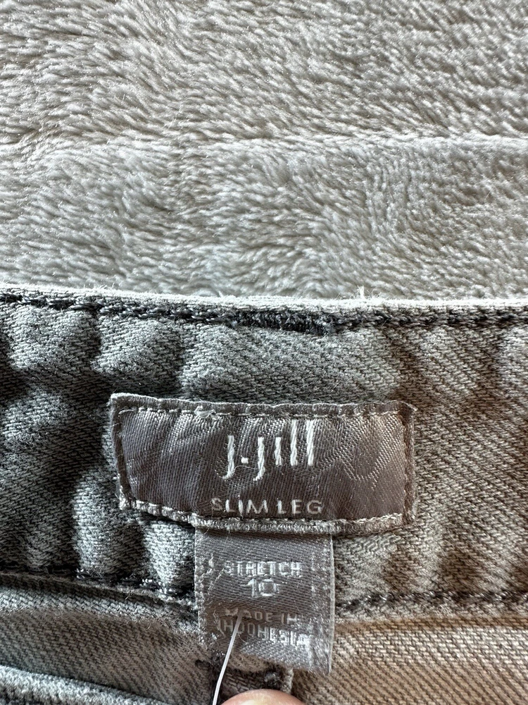 Elevate your denim game with these J.Jill Slim Leg Denim Jean Speckled Stretch Jeans Pants in size 10. The white canvas fabric type and straight style make them versatile for any occasion. The stretch feature adds comfort to your fit, while the slim leg design gives a flattering silhouette. These jeans are perfect for any woman looking for a regular size type with a touch of elegance. The J.Jill brand speaks for itself, ensuring you receive a high-quality product. Add these pants to your wardrobe for a staple piece that will never go out of style.