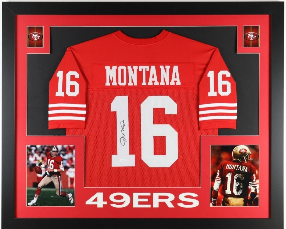 UPC:Does not applyProduct:JerseyOriginal/Reprint:OriginalSigned:YesSport:Football-NFLTeam:San Francisco 49ersFeatured Refinements:Jersey Framegtin13:Does not applyAutograph Authentication:James Spence Authentication (JSA)Player:Joe Montana