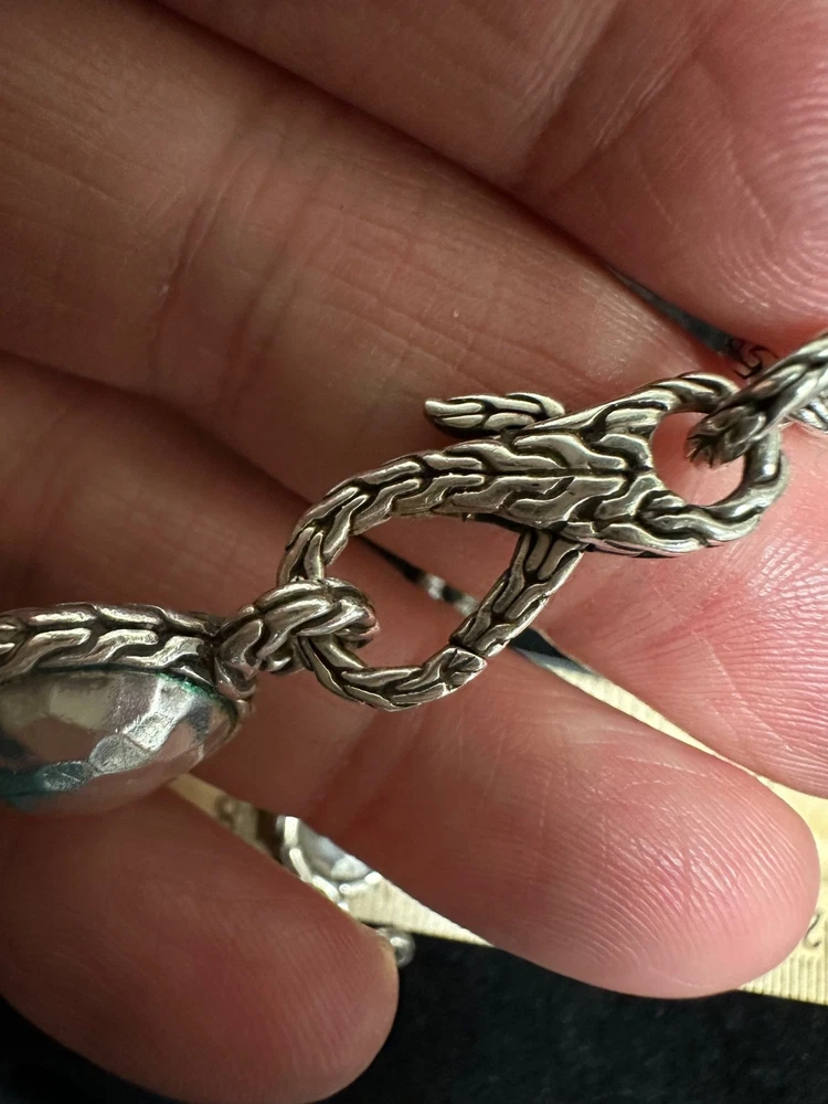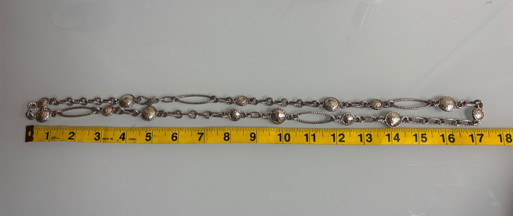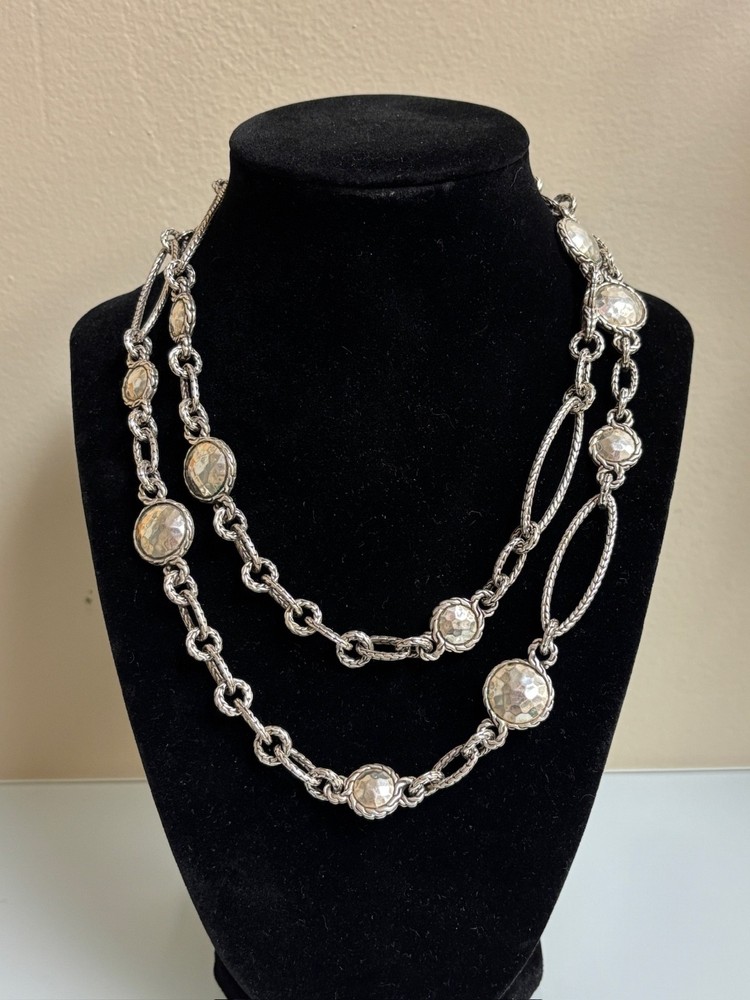 JOHN HARDY STERLING SILVER DOT LINK NECKLACE IN EXCELLENT PRE-OWNED CONDITION, THERE IS VERY LIGHT WEAR TO THIS PIECE. IT MAKES A STATEMENT WORN LONG AT 36” OR DOUBLED. PLEASE VIEW ALL PHOTOS.