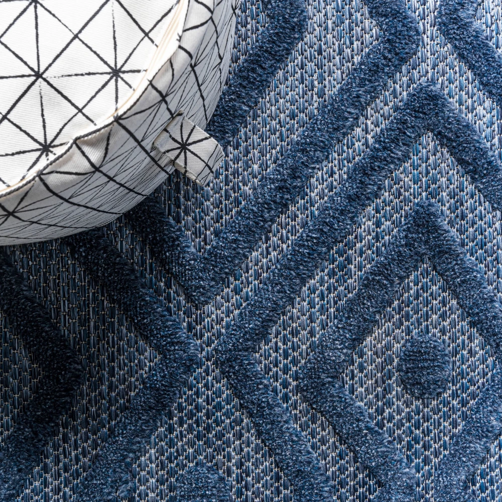 1. This rug is a game-changer! The bold blue geometric design instantly elevates any space—indoors or outdoors. It's super durable, easy to clean, and handles pets/kids like a champ. The textured, vintage look adds cozy charm without sacrificing modern style. Perfect for high-traffic areas, and the polypropylene material makes it weather-resistant. So stylish yet practical—absolutely love it!
