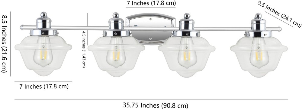 Powered by Frooition All Categories JONATHAN Y Lighting JYL3533 Orleans 4 Light 36" Wide LED Bathroom Vanity Light Overview Item Description Features Constructed from iron with a glass shade (4) 4 watt maximum medium (E26) LED bulbs included Dimmable UL rated for damp locations Meets California Title 24 energy standards Covered under a 30 day Manufacturer Warranty for defects only Dimensions Height: 8-1/2" Width: 35-3/4" Extension: 9-1/2" Product Weight: 6.64 lbs Shade Height: 6" Backplate Height: 3/4" Backplate Width: 7" Electrical Specifications Number of Bulbs: 4 Max Watts Per Bulb: 4 watts Lumens: 420 Bulb Base: Medium (E26) Bulb Type: LED Color Temperature: 2700K Color Rendering Index: 80 CRI Bulbs Included: Yes Why Choose BuildInc? OUR PROMISE TO YOU About Us At Build, we promise to provide the best selection we can, most competitive pricing, and unmatched customer service. Our store has quality home improvement products from trusted manufacturers like Moen, American Standard, Delta, Kraus, Kichler, Progress Lighting, Schlage, Kwikset, Baldwin, Broan, NuTone, Air King, and Rev-A-Shelf. With over 200,000 home improvement products for you to choose from, we have just what you need to get your project done. Fast & Free Shipping We promise to make it our priority to get you your items as fast as we can. We ship from 440 warehouses around the country, ensuring that your product will get to you as soon as possible. We know you're eager to get your hands on your new purchase, we would be too. As a bonus, most items ship for free. Returns We are happy to accept returns of unused or defective items for a refund within 30 days from the date of delivery. For returns outside 30 days, please contact our Customer Service team to go over our options. For full details, please view the Shipping and Payments tab above. To initiate a return simply go to the eBay Returns Portal and submit a return request. We ask that all items be returned with all original components via a traceable method. Once your return is received and processed, we will quickly get your refund or replacement issued. If for any reason you are unsatisfied with your purchase or for product or warranty questions, please contact Customer Service team for assistance. More Items! View more great items! About Us | Shipping | Returns | Contact Us | FAQ | Collections | Special Offers! Powered by Frooition Frooition Frooition | No-js Template | eBay design, eBay store design, eBay shop design, eBay template design, eBay listing design (ver:froo_no_js) This listing is currently undergoing maintenance, we apologize for any inconvenience caused.