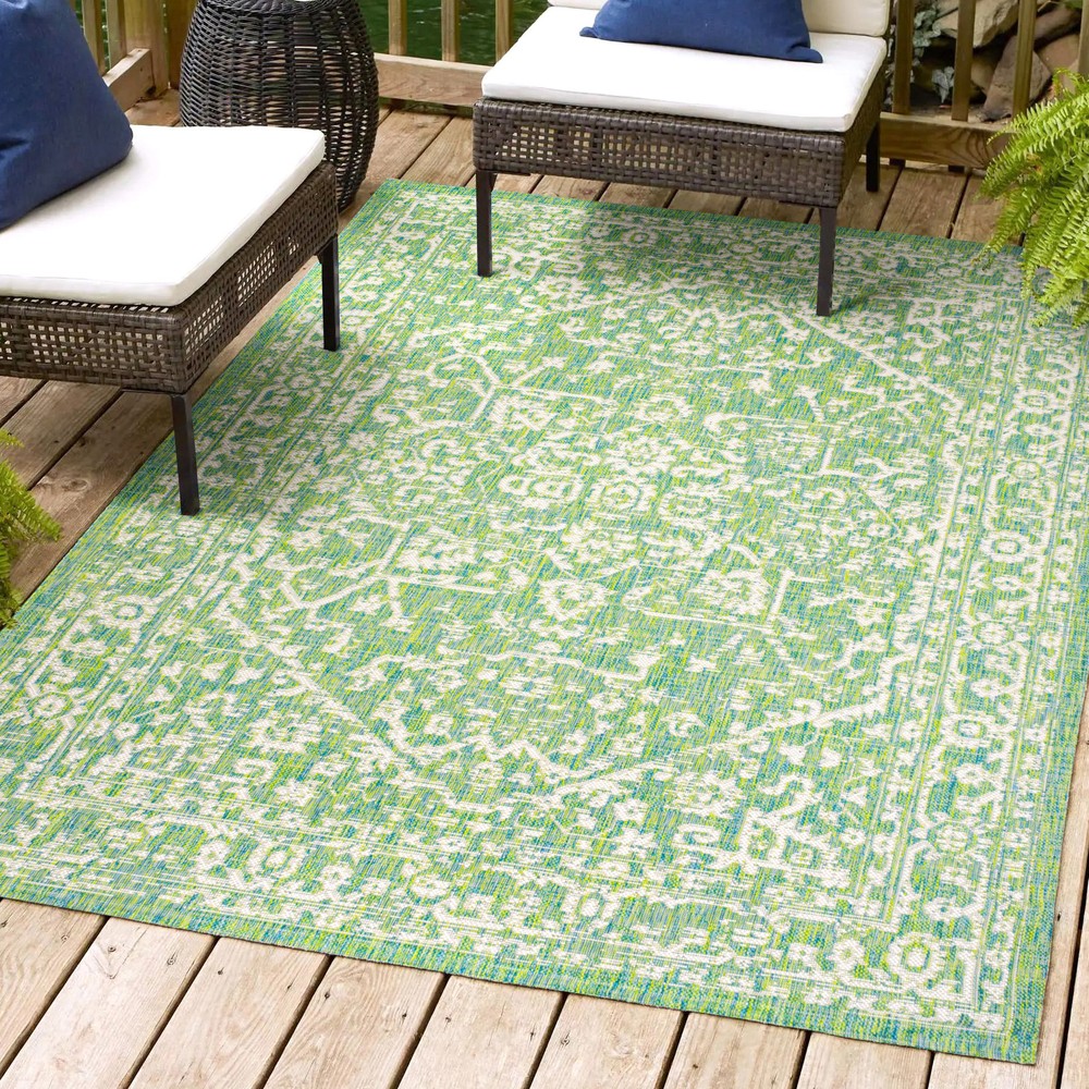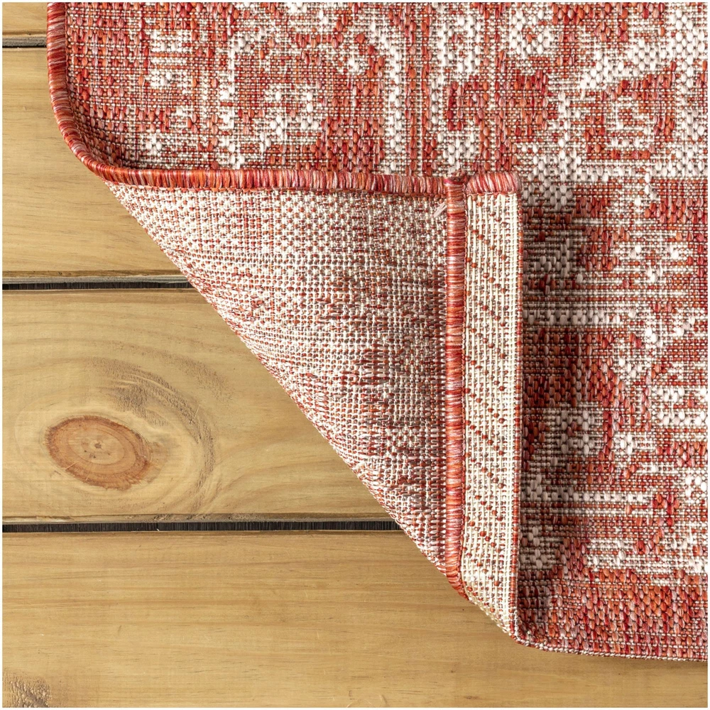Absolutely love this vibrant rug! The bold fuchsia and light gray colors bring a fun, eclectic pop to my patio—totally transforms the space. The polypropylene material feels durable and water-resistant, perfect for both indoor and outdoor use. Easy to clean and lays flat without curling. The vintage-inspired medallion pattern adds a bohemian touch without looking too busy. So happy with this purchase—great quality for the price!