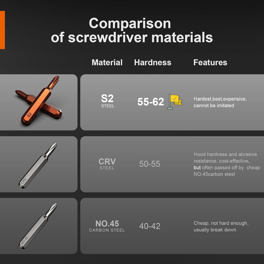This precision screwdriver set is a must-have for any DIY enthusiast or tech repair lover! The high-quality S2 steel bits stay sharp and durable, while the comfortable handle provides a solid grip. With 38 different bits, it covers everything from tiny electronics to household gadgets. The compact case keeps everything organized, making it super convenient for on-the-go fixes. The stylish color options add a nice touch, and the affordable price makes it a fantastic value. Highly recommended for anyone who loves tinkering!