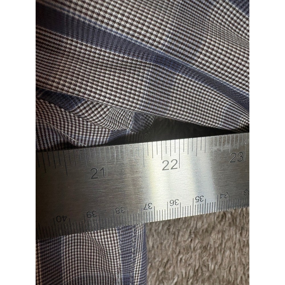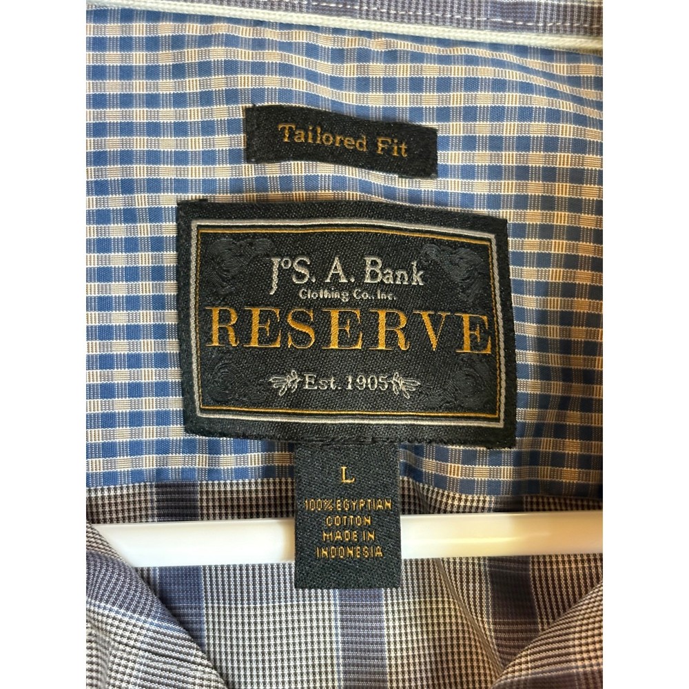 JOS A BANK RESERVE tailored fit long sleeve dress shirt in a classic plaid pattern. This refined shirt combines sophisticated style with comfortable wear, perfect for elevating your professional or smart casual wardrobe. Its versatile design makes it suitable for business meetings, dinner dates, or weekend outings. Measurements: • Chest: 22 in • Length: 29 in Department: Men Fit: Tailored Fit Sleeve Length: Long Sleeve Pattern: Plaid Type: Dress Shirt Collar Style: Button-Down Material: 100% Egyptian Cotton Top Cuff Style: Barrel Cuff Features: Breathable Neckline: Collared Keywords: JOS A BANK, dress shirt, plaid, tailored fit, long sleeve, Egyptian cotton, business casual, smart casual, office wear, professional, classic, menswear