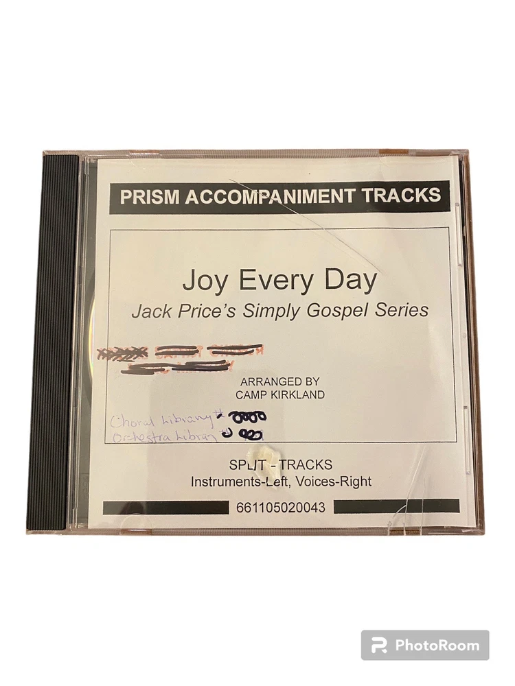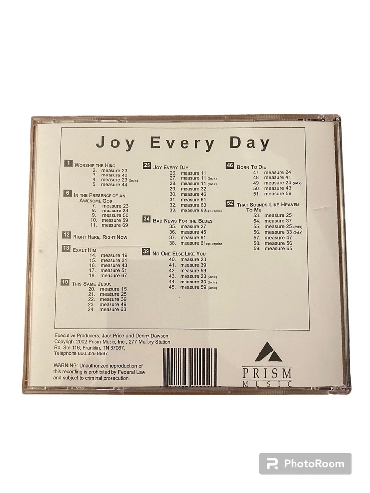JOY EVERY DAY Split Track Accompaniment Track CD~2002~Jack Price's Simply Gospel Title: JOY EVERY DAY Series: JACK PRICE'S SIMPLY GOSPEL SERIES Split-Track Accompaniment CD Track Label: PRISM Release Year: 2002 Titles index: see pics ships via media mail CONDITION NOTES: lightly played - no skips - used once to download to Mac - CHURCH INFO MARKED OUT ON CD INSERT