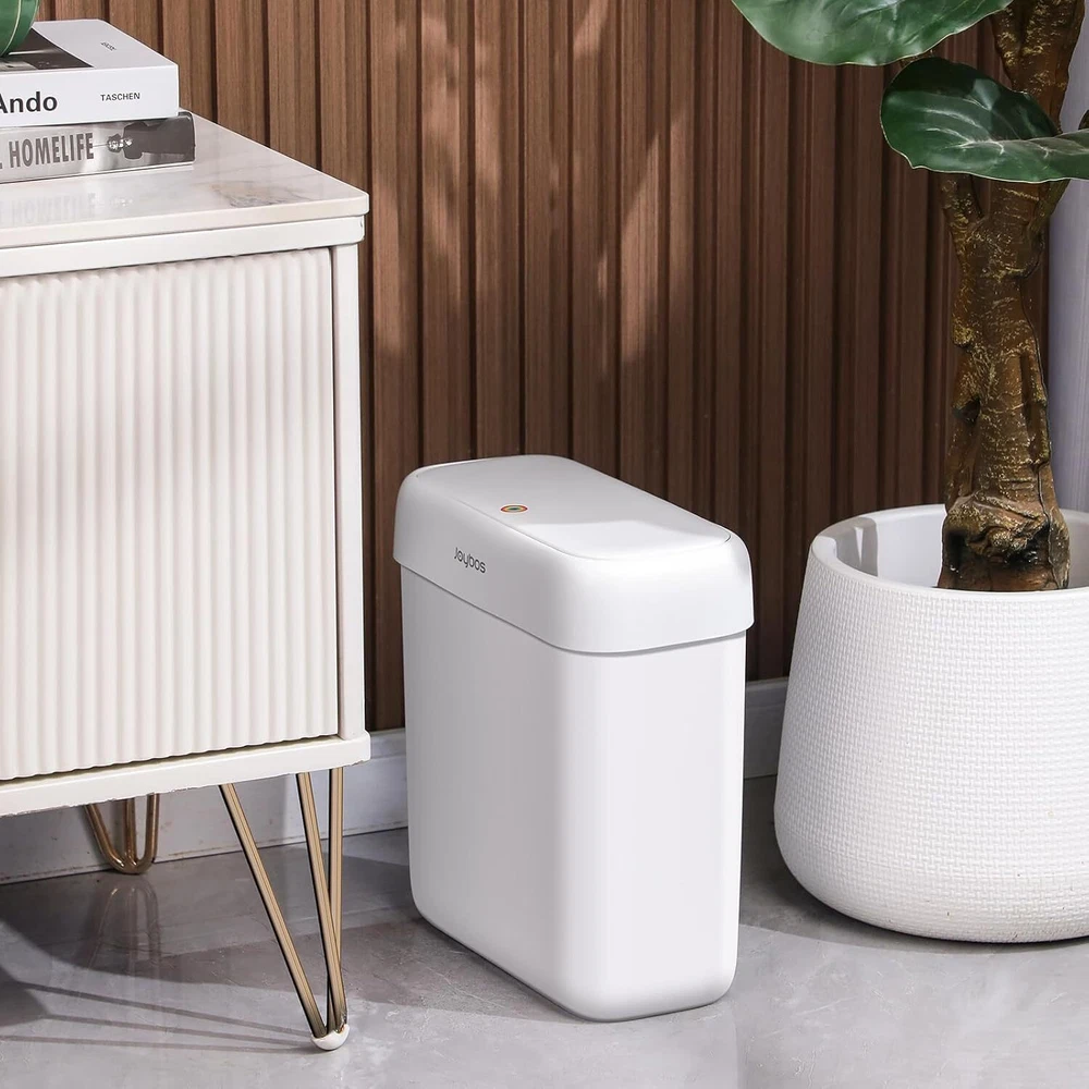 JOYBOS Bathroom Trash Can with Lid,3 Gallon Small Garbage White Product Details Product Dimensions : 11.42 x 5.71 x 12 inches; 1.79 Pounds Item model number : S02A2-JWT Manufacturer : JOYBOS Country of Origin : China Brand: JOYBOS Capacity: 3 Gallons Color: White Opening Mechanism: Press-Top Material: Acrylonitrile Butadiene Styrene Recommended Uses For Product: Bathroom Trash Can with Lids Room Type: Bathroom, Kitchen, Living Room, Bedroom, Home Office Special Feature: Odor Seal Shape: Rectangular Finish Type: Polished 【- 】 Pop-up top lid, rainbow-colored buttons, one-button positioning, light press to open and close, no lag and no noise, making the disposal process a breeze. Upgraded snaps, more tough. 【 】 We usually place the trash can in the corner of our home and we don't want to take up too much space, this small bathroom trash can with a capacity of 10 liters/3 gallons can save space and is especially suitable for limited space or narrow gaps. 【 】 When we buy a trash can, protecting privacy is particularly important. When guests visit, if the garbage in the trash can is exposed, it will give them a bad experience, so the design with a cover is our best choice. When we use it as a kitchen trash can, it can smoothly fit into the narrow space next to the kitchen cabinets and isolate odors. It is definitely recommended for anyone with sensitive noses or who needs to be cautious in handling bathroom trash, and it is more convenient to use with a capper. 【 】 The trash can is made of new ABS material. Very sturdy and easy to wipe clean. This would also work well in the office or if you want a smaller bin in the kitchen, but definitely anywhere in the office living room where you want a smaller bin, this would even be perfect for your bedroom. 【 】 Our white pneumatic trash can is suitable for all places. It is large, practical, beautiful and reasonably priced. Push the lid to open or close.JOYBOS bathroom trash can not only organizes trash, but also enhances your existing decor. It can also be given as a gift to your relatives and friends, bringing them the warmth of home. 【 - 】 The Joybos brand has a mature and complete after-sales system. After you receive the JOYBOS Bathroom Trash Can with Lid, if you have any questions or quality problems, please feel free to contact us, and your problems will be perfectly resolved in the shortest possible time.