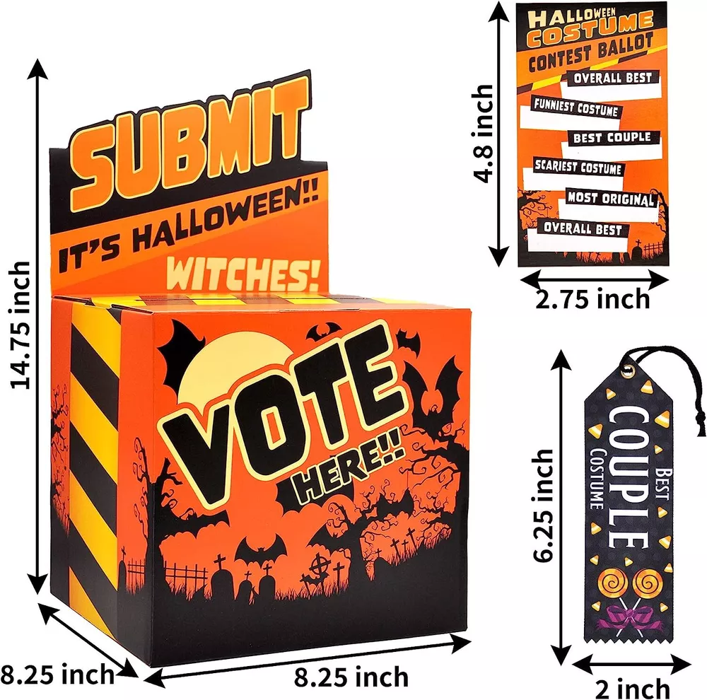 JOYIN Halloween Party Costume Contest Ballot Box, 50 Voting Ballots and 6 Trophy
