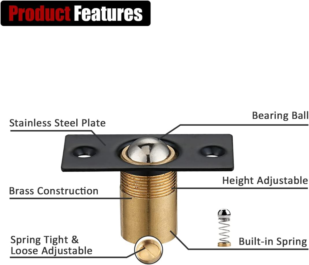 Store New Arrivals Add to Favorite View Feedback Contact JQK Closet Door Ball Catch Hardware, Stainless Steel Catch Adjustable with Strike Plate, Black Finish 2 Pack, HBC100-BK-P2 Description Item model number HBC100-BK-P2 Part Number HBC100-BK-P2 Style Modern Finish Stainless Number of Pieces 2 Mounting Type Flush Mount Item Package Quantity 2 Color Black Brand JQK Material Stainless Steel Batteries Required? No Package Dimensions 4.17 x 2.76 x 1.57 inches Item Weight 5.1 ounces Batteries Included? No Color Name Black Special Features Easy to Install Manufacturer JQK Hardware Finish Type Stainless Size Name 2 Pack Size 2 Pack 【ALL METAL Ball Catch】 solid stainless steel and brass construction, rust-proof & toughness ensuring high quality and longevity 【Smooth Spring & Ball】 Used on closet doors with dummy knobs or levers and forms secure closure and smooth open. 【universal replacement hardware】 10 mm adjustable ball catch, screw hole distance: 40 mm 【Please check the dimension before purchase】 you can see it in the 2nd picture. 【Super easy to install】 4 screws (stainless steel, too) to secure it in place Product Description JQK Hardwares Add to Cart Add to Cart Add to Cart Add to Cart Add to Cart Add to Cart Add to Cart Customer Reviews 4.6 out of 5 stars 4,799 4.5 out of 5 stars 8,202 4.6 out of 5 stars 2,344 4.5 out of 5 stars 619 4.5 out of 5 stars 4,402 4.5 out of 5 stars 3,084 4.1 out of 5 stars 165 Price $7.39 $ 7 . 39 $6.99 $ 6 . 99 $10.99 $ 10 . 99 $7.40 $ 7 . 40 $7.60 $ 7 . 60 $17.60 $ 17 . 60 $29.99 $ 29 . 99 Product Name Ball Door Catch Magnetic Door Catch 3.54" Door Stopper Wedge Door Stopper 5" Door Hasp 3/8" Inset Cabinet Hinges 1/2" Partial Overlay Hinge Material — — — — — — — Colors — — — — — — — Installation — — — — — — — Packs — — — — — — — ABOUT US We offer the best prices around on high quality products. Our E-store includes media such as books, movies, music and games while offering electronics, toys, sporting apparel, clothing, tools, general home, garden items and more. SHIPPING We are always working hard to ensure your package arrives as soon as possible. Please understand that some factors like weather, high postal traffic, and the performance of shipping companies are outside of our control. We offer free shipping to the lower 48 states and ship within 2 business days of payment, usually sooner. We do not accept P.O. Boxes. Please provide a physical address. RETURNS We offer a 30-Day Return Policy on items which you are not completely satisfied with. You have the option for a full-refund or an exchange of the item. No returns are available on items shipped outside of the USA. PAYMENT We accept PayPal. CONTACT US This page content is yet to come Please ad us to your favorite seller and visit again later Thank You CUSTOMER SATISFACTION We try our very best to make sure every customer is completely satisfied. If there's a problem, message us! We're happy to help.