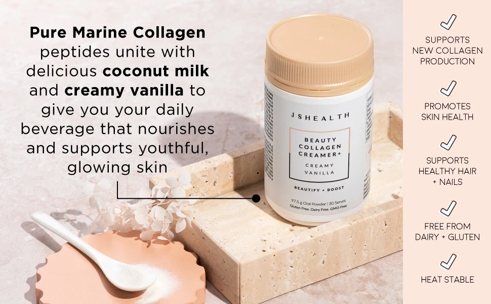 JSHealth Collagen Creamer - Vanilla Collagen Creamer for Coffee - Dairy Free Healthy Coffee Creamer, 30 Servings of Marine Collagen Peptides Effectively Supports Collagen Levels: Collagen is the primary building block for skin, hair and nails, which decreases as we age. The JSHealth collagen coffee creamer brings together powerful collagen peptides with delicious coconut milk and creamy vanilla to give your daily beverage an age-defying boost of nourishment. Dairy Free & Flavored by Coconut Milk: The delicious, creamy vanilla flavor is in part powered by coconut milk. The perfect dairy free way to complement your morning coffee and your morning glow. For Healthier Hair, Skin & Nails: Bioactive peptides in this product work to help the skin appear plump and hydrated, reducing the appearance of signs of aging, and enhancing the vitality of hair, skin & nails. 100% Pure, Sustainably Sourced: We use only pure, wild deep sea cod skin sustainably sourced from the pristine waters of Norway. Marine collagen is up to 1.5 times better absorbed than other collagen sources such as bovine or porcine. Great for Coffee & More: The collagen creamer can add a touch of sweetness to your morning coffee or any other hot beverage of your choice.