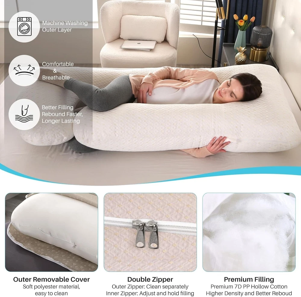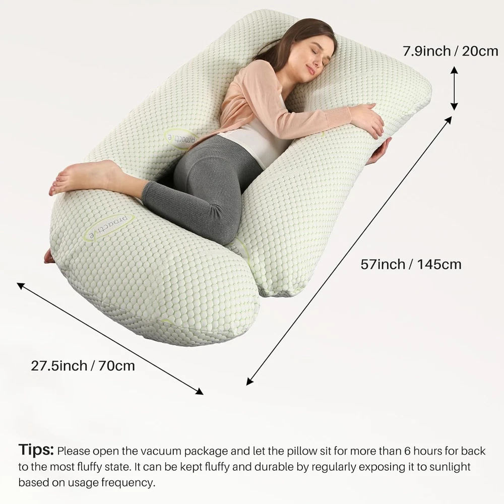 Description Description: 【Full Body Pillow for Pregnant Women】-The pregnancy pillow is 27"x27.5"x8". We have designed a larger size and fuller filling to perfectly support your whole body. gives total pregnant support to your head, back, hips and legs, maternity pillows for sleeping full body. 【Multipurpose Maternity Pillow】pregnancy pillow not only can be served as body pillow for sleeping,but also a maternity body pillow for reading,feeding or relaxing, pregnancy pillows for sleeping cooling is also a good side sleeper pillow. 【Ergonomic Body Pillow 】- We have combined the design concept of the old U and C pregnancy pillow, and we have not only increased the size, And add more premium filling,pregnancy pillows cooling to give you more comfortable support in more areas.Helps relieve discomfort associated with pregnancy, sciatica, fibromyalgia, gastric reflux, and more. 【Easy to Care】pregnancy pillow features a detachable cover for easy cleaning. Simply remove the cover for machine washing to keep it fresh and hygienic. It is machine washable in cold water on a gentle cycle with mild detergent; avoid bleach and ironing. 【Versatile Pregnancy Pillow】 The body pillow pregnancy is not only for pregnant women but for anyone needing more support, If you need a side sleeper pillow or more support for your head, neck, legs, and back while you sleep, you should have this one.Start with the maternity pillow, which perfectly supports all parts of your body for a better night's sleep. Specifications: Type: Pregnancy Pillow Shape: J Shape Material: Polyester Size: 145cm*70cm/27.5 * 57inch Fill material:7D PP Hollow Cotton Package List: 1 x J Shaped Full Body Maternity Pillow Tips: The body pillow is compressed in vacuum package for convenient shipping Please pat the pillow and let it expand for at least 48 hours to make it fluffy enough before using. Shipping: Free Shipping within the 48 States. We ship within the United States only. The term EXCLUDES the states of Alaska, Hawaii and all off-shore U.S. territories and possessions such as Puerto Rico, Guam and Virgin Islands. We do not ship to APO and FPO. Delivery Time: 3-8 business days (Varies by Destination) If you have any questions or problems with delivery, please contact us. Return & Warranty 30 DAY MONEY BACK SATISFACTION GUARANTEE | 360 DAY WARRANTY COVERS MANUFACTORY DEFECTS Returns are permitted and must be initiated by the buyer within 30 days from delivery date. In order to return an item, you must contact to request an Return Merchandise Authorization Number (RMA). No return package will be accepted without a valid RMA number. All products are covered by our warranty against defects. If an item proves to be defective, please contact to have the product repaired or replaced. Contact US Please send all correspondence through the eBay messaging system. Messages will be replied during business hours: 9AM to 6PM Pacific Time. Monday to Friday only (excluding Holidays). After hours messages will be replied on the next business day.