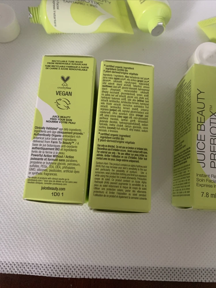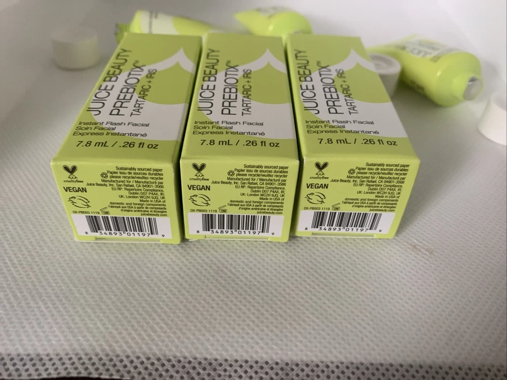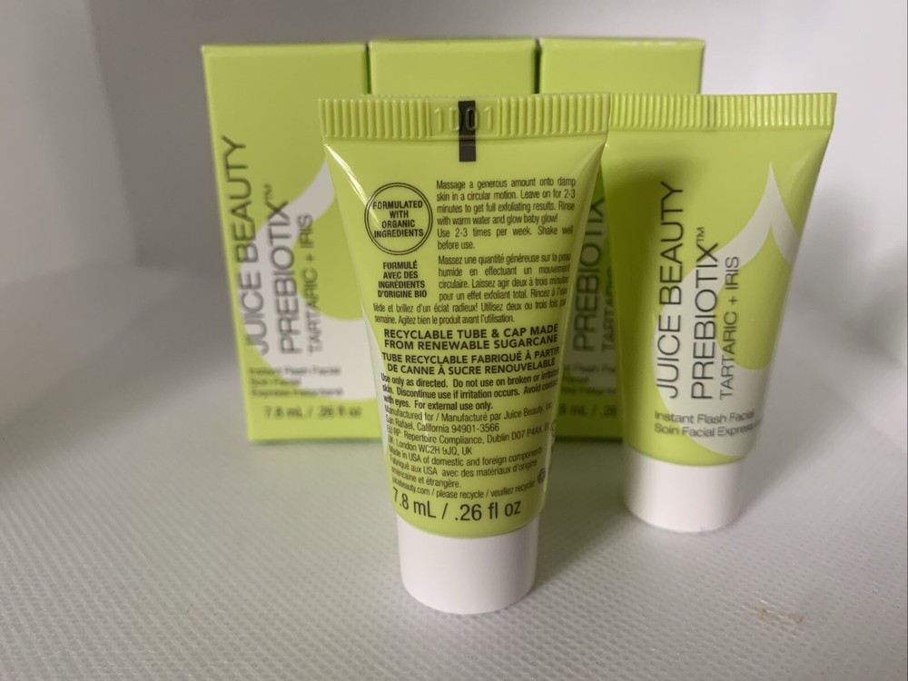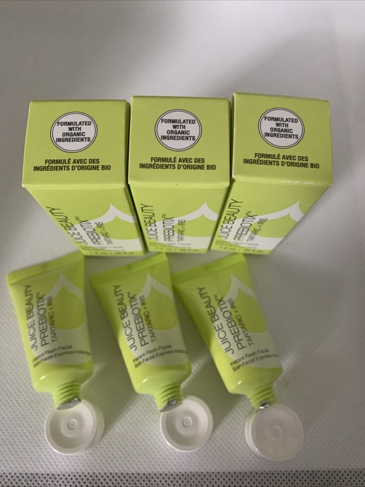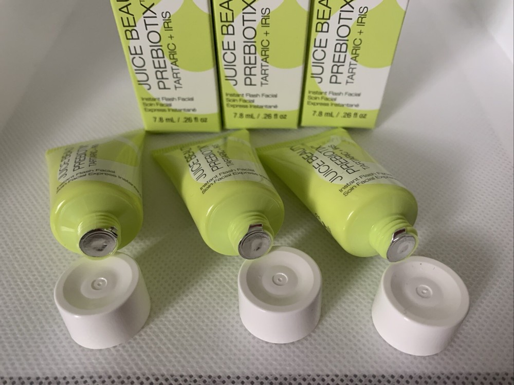 3x JUICE BEAUTY Prebiotix Instant Flash Facial Tartaric Iris .26oz Travel SEALED.