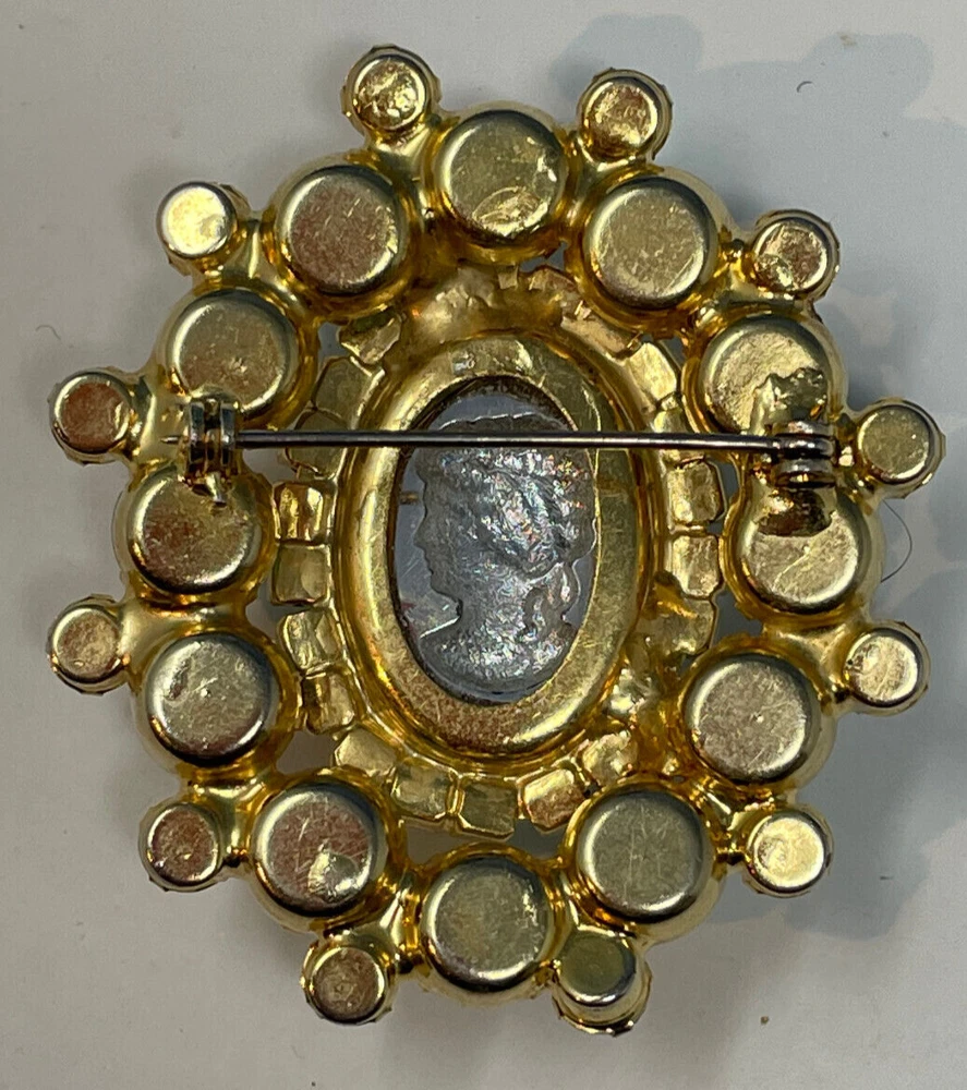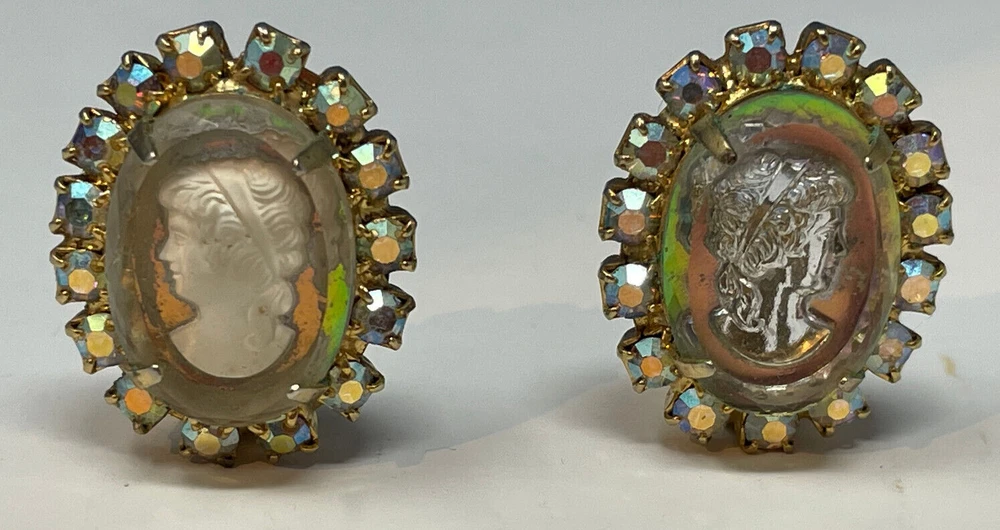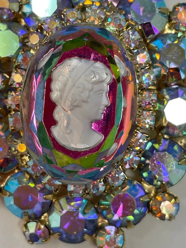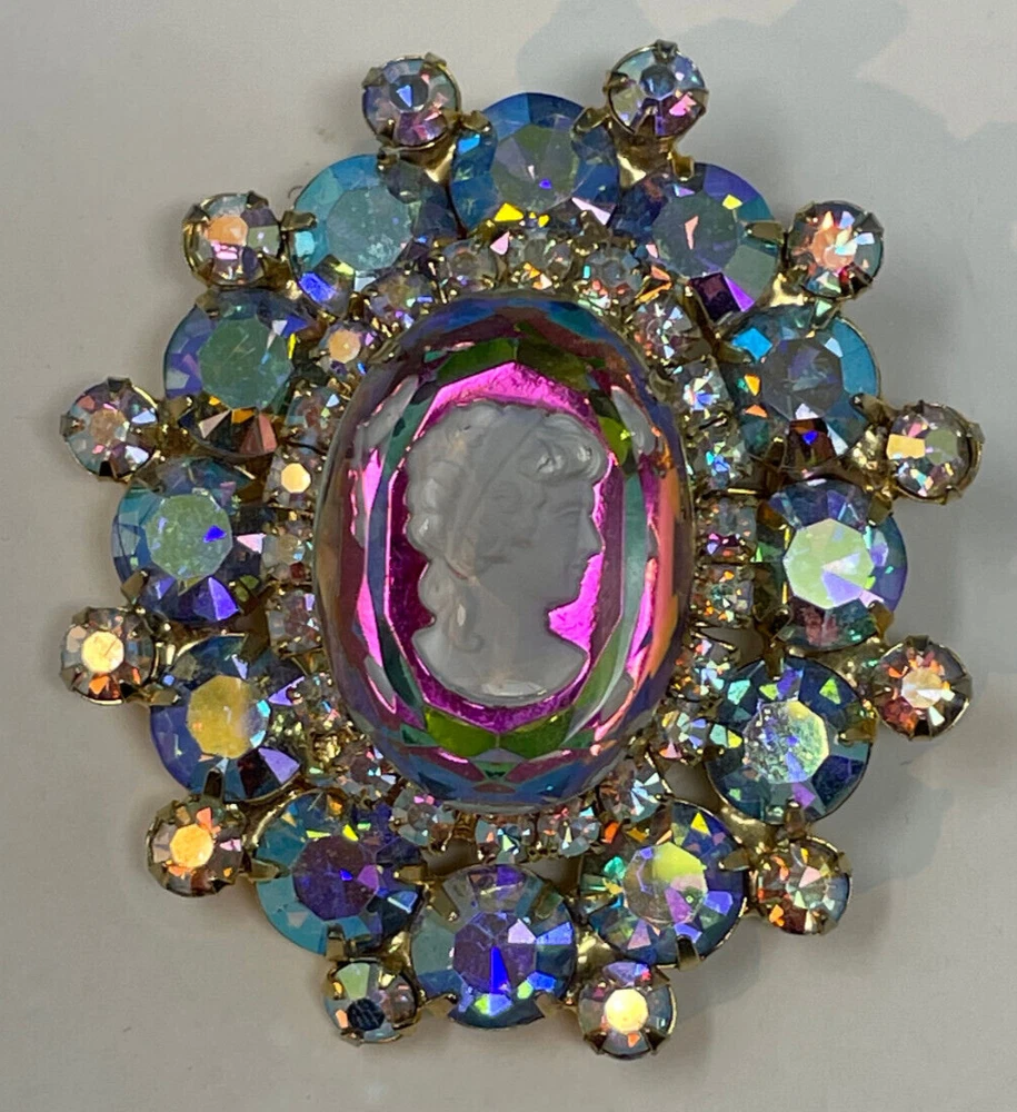 Welcome to Aultimate Antiques, your aultimate destination for all things collectable! I tend to list jewelry, glassware, silver, gold, pottery, & who knows! Enjoy your search...hope to see you again ! Juliana by D&E Intaglio cameo. Pink highlighting with "sulfur" cameo. Brooch is in perfect condition. No damage, no re-glue, no repair. 2" x 1 3/4". I have earrings that match, they are shown. They have damage and when purchasing, if you don't want them that is fine too. The one just needs the intaglio cameo re-painted. Great set, brooch is awesome! I am always happy to combine shipping on items! I am always open to offers, but please be reasonable. 50% off is NOT going to happen. I like some good old fashioned negotiating, but I get turned off with cheap offers! So please understand, I AM negotiable, and wanting you to own this treasure! I know shipping is expensive! I hate paying for it too. But, I am as thrifty as I can be. Please remember, when you want ME to cut corners...to make it cheaper. It might not arrive to you in the condition I advertised. My goal is to pack it as best as possible to get it to you in the condition I sold it to you. INTERNATIONAL buyers, please understand that once the tracking shows it arrived in your home country; there is little to anything I can do to find your item. You accept all risk for lost articles once it arrives in your country. I can provide tracking history, but that is all I can do. If you are bidding on my auctions just to have fun bidding & don't intend to PAY for the item; then please don't be surprised if I don't let you bid on my auctions, thankyouverymuch. Please note: Please do your due diligence by reading the FULL description above and looking at all of the pictures! My goal is to have a happy customer with a smooth transaction. But I do NOT do returns, I work very hard to photo & describe condition to minute detail. If you don't look at pictures or read the description; it is not my fault when you are unsatisfied. PLEASE READ THE DESCRIPTION! I AM NOT RESPONSIBLE FOR WHAT YOU HAVE READ INTO IT! Personal information (ie: mailing address) is kept confidential. I only use your personal information to complete the transaction. I don't store information or sell it.