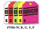 Jumbo Mirror Hang Tags These big fluorescent hang tags get great visual attention. Printed Black ink on heavy Fluorescent stocks Available tag colors are Fluorescent Red, Fluorescent Green, Fluorescent Yellow, Fluorescent Pink & Fluorescent White Packaged 50 per pack 8-1/2" x 11- 1/2" (1-1/4" hole size)