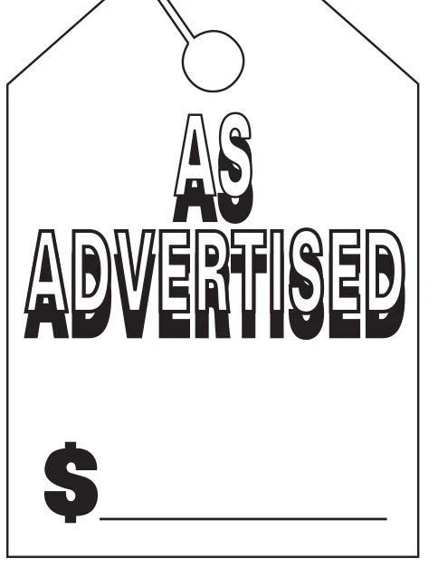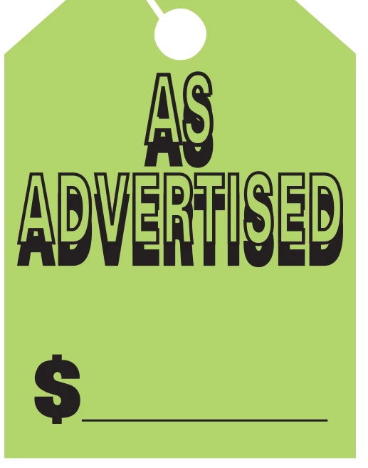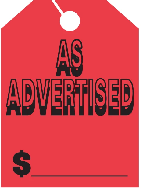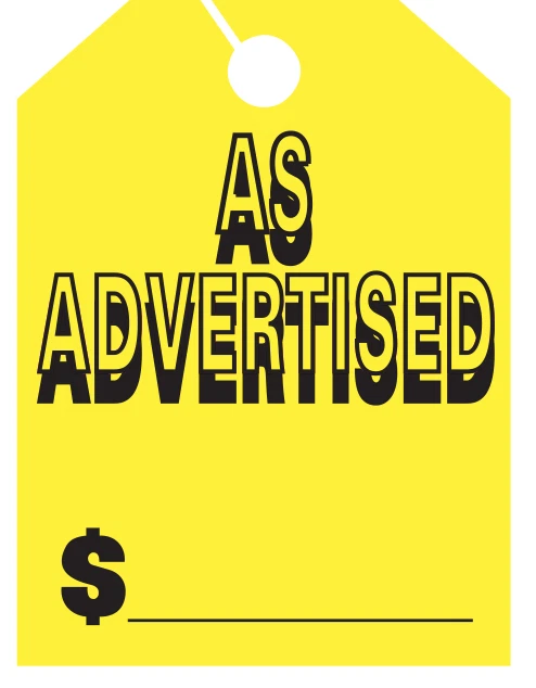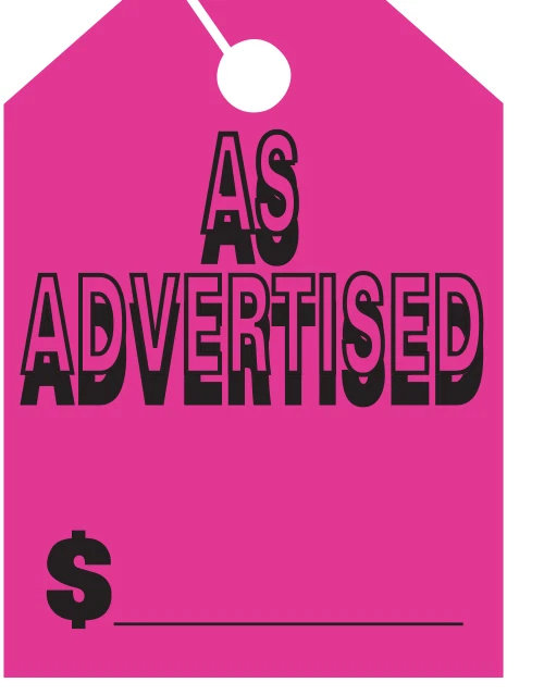 JUMBO CAR DEALER REAR VIEW MIRROR HANG TAGS SALE PRICE AS ADVERTISED SIGN