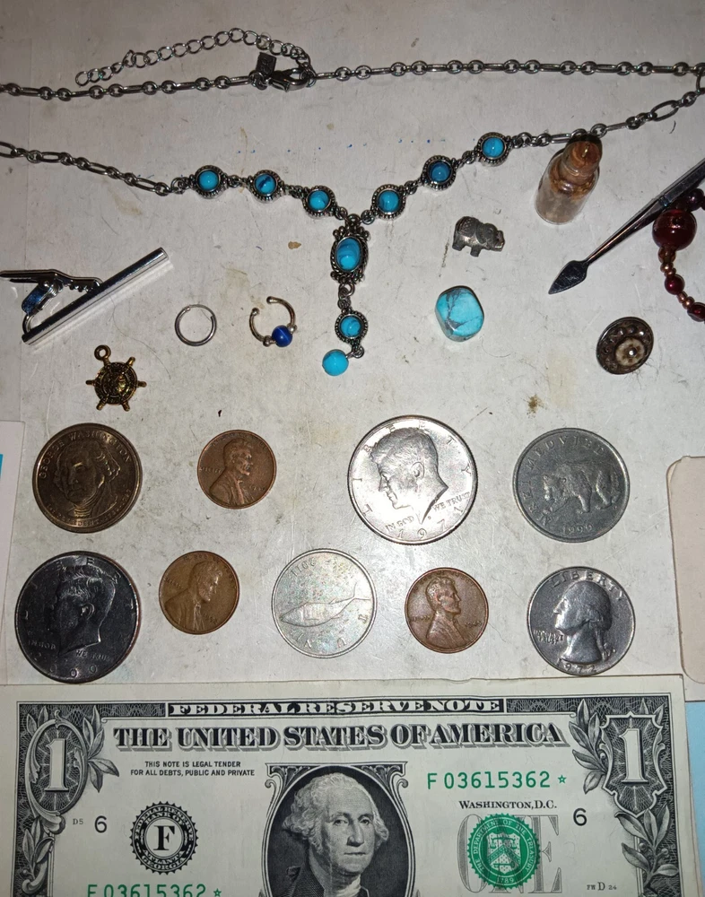 JUNK DRAWER LOT__USA 0LD COINS_JEWELRY VINTAGE_Turquoise_SILVER_Stamp_$1