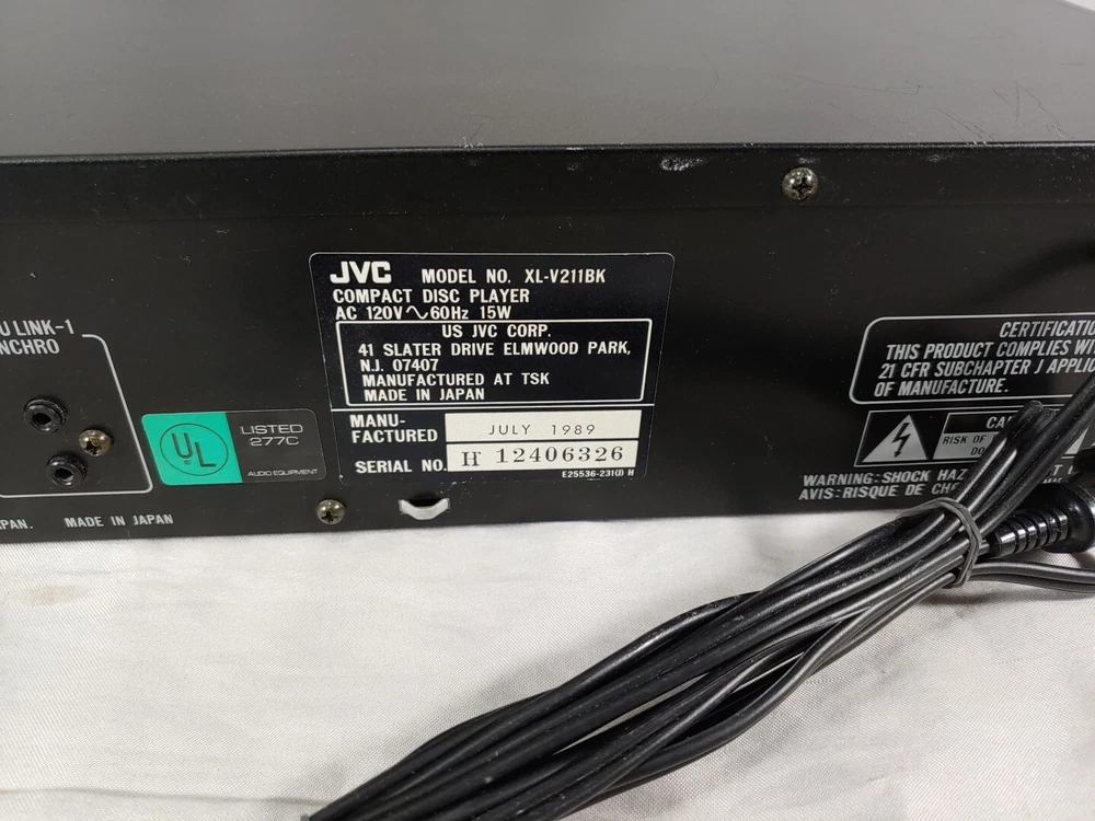 JVC XL-V211BK Vintage 1989 Single Disc CD Player Compact Disc Tested