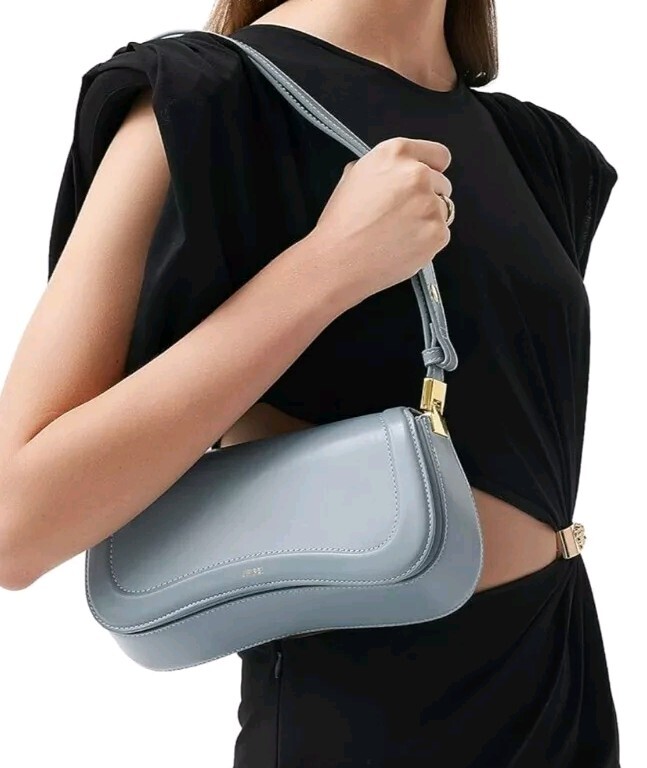 Elevate your style with the JW PEI Women's Joy Shoulder Bag in a stunning light blue color. Made from high-quality vegan leather, this small-sized bag is perfect for formal occasions and everyday use. The rectangular shape and magnetic closure provide a sleek and sophisticated look, while the brown shoulder strap and gold hardware add a touch of elegance. Accessories Included: Original Dust Bag Bag Width: 10.4" Bag Height: 5.7" Bag Depth: 2.4" Exterior Material: Vegan Leather Handle Style: Shoulder Strap Handle/Strap Color: Brown Hardware Color: Gold Occasion: Formal Style: Shoulder Bag Unit Quantity: 1 The bag is pre-owned, but in excellent condition, like new.