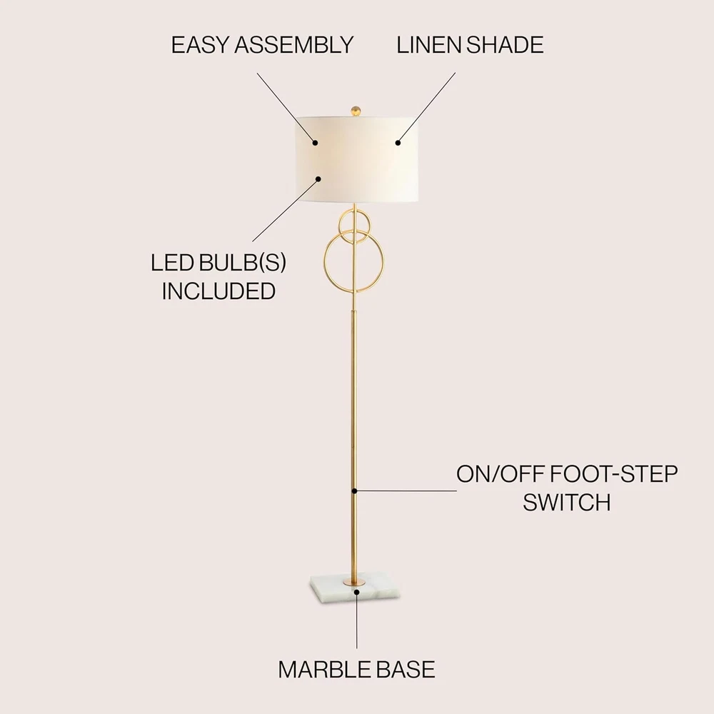 Store New Arrivals Add to Favorite View Feedback Contact JYL1097A Haines 60" Modern Circle Marble/Metal LED Floor Lamp Classic,Glam,Transitional for Bedrooms, Living Room, Office, Reading, Gold Description Light Source Type LED Item model number JYL1097A Style Contemporary Number of Items 1 Power Source Corded Electric Pattern Solid Number of Light Sources 1 Control Method Touch Cutting Diameter 15 Inches Bulb Base GU24 Lighting Method LED Lamp Type Light Emitting Diode Number of Pieces 1 Room Type Office, Living Room Finish Metal Bulb Shape Size B10 Product Dimensions 15"D x 15"W x 60"H Material Metal, Marble Installation Type Freestanding Finish Type Metal Specific Uses For Product Reading, Decoration Included Components 1 lamp Item Package Quantity 1 Indoor/Outdoor Usage Indoor Brightness 800 Lumen Country of Origin China Water Resistance Level Not Water Resistant Batteries Required? No Assembled Diameter 15 Inches Item Weight 13.51 Pounds Connectivity Technology IR Special Features Corded Special Feature Corded Part Number JYL1097A Shade Color White Mounting Type Floor Mount Certification UL, ETL Color Gold Leaf/White Wattage 100 watts Is Cordless? No Base Material Marble Global Trade Identification Number 00819727029412 Is Waterproof False Shape Cylinder, Circle Voltage 120 Volts Recommended Uses For Product Decoration, Reading Shade Material Linen Warranty Description 30 day manufacturer warranty for defects only, for warranty information on this product, please call the internet customer service center. Normal wear and tear is not warranted. Visible damages not noted upon delivery will be determined to be customer damage and will not be warranted. All products are inspected upon arrival and we do not accept worn, dirty or stained merchandise. Switch Type Touch QUALITY CONSTRUCTION: JONATHAN Y table lamps designed to illuminate your home, stylish additio; included LED bulbs and our lamps fit standard light bulbs too! ETL Listed and meets 120-volt UL standards for safety and quality ENERGY-SAVING LED BULBS INCLUDED: LED bulbs provide soft, flicker-free lighting; JONATHAN Y LED bulbs have a lifespan of 25,000 hours; Will still last multiple years; Our high-quality LED bulbs are an energy-saving upgrade SATISFACTION GUARANTEED: Every JONATHAN Y design is created with uncompromising attention to detail, using only the highest quality components; Based in Soho, New York, designer Jonathan and his talented team create affordable high-end home decor A marble base adds an elegant touch On-off foot-step switch A modern classic, this stylish floor lamp has an open circle design and a brass-gold finish, anchored into a marble base. The rich marble and gold combination suits traditional and modern interiors. Quality details include a foot-step switch and silk-wrapped cord. ABOUT US We offer the best prices around on high quality products. Our E-store includes media such as books, movies, music and games while offering electronics, toys, sporting apparel, clothing, tools, general home, garden items and more. SHIPPING We are always working hard to ensure your package arrives as soon as possible. Please understand that some factors like weather, high postal traffic, and the performance of shipping companies are outside of our control. We offer free shipping to the lower 48 states and ship within 2 business days of payment, usually sooner. We do not accept P.O. Boxes. Please provide a physical address. For shipping outside of the continental USA, we only use eBay's Global Shipping Program.The item is shipped to KY and then sent to the rest of the world. International customers are responsible for all duties and taxes. Continue to check out in order to calculate costs for shipping the item to your country. Messages regarding eBay's Global Shipping Program MUST be directed at eBay EXCLUSIVELY. RETURNS We offer a 30-Day Return Policy on items which you are not completely satisfied with. You have the option for a full-refund or an exchange of the item. No returns are available on items shipped outside of the USA. PAYMENT We accept PayPal. CONTACT US This page content is yet to come Please ad us to your favorite seller and visit again later Thank You CUSTOMER SATISFACTION We try our very best to make sure every customer is completely satisfied. If there's a problem, message us! We're happy to help. WE ACCEPT Copyright © 2021 AutoDS. | All Rights Reserved