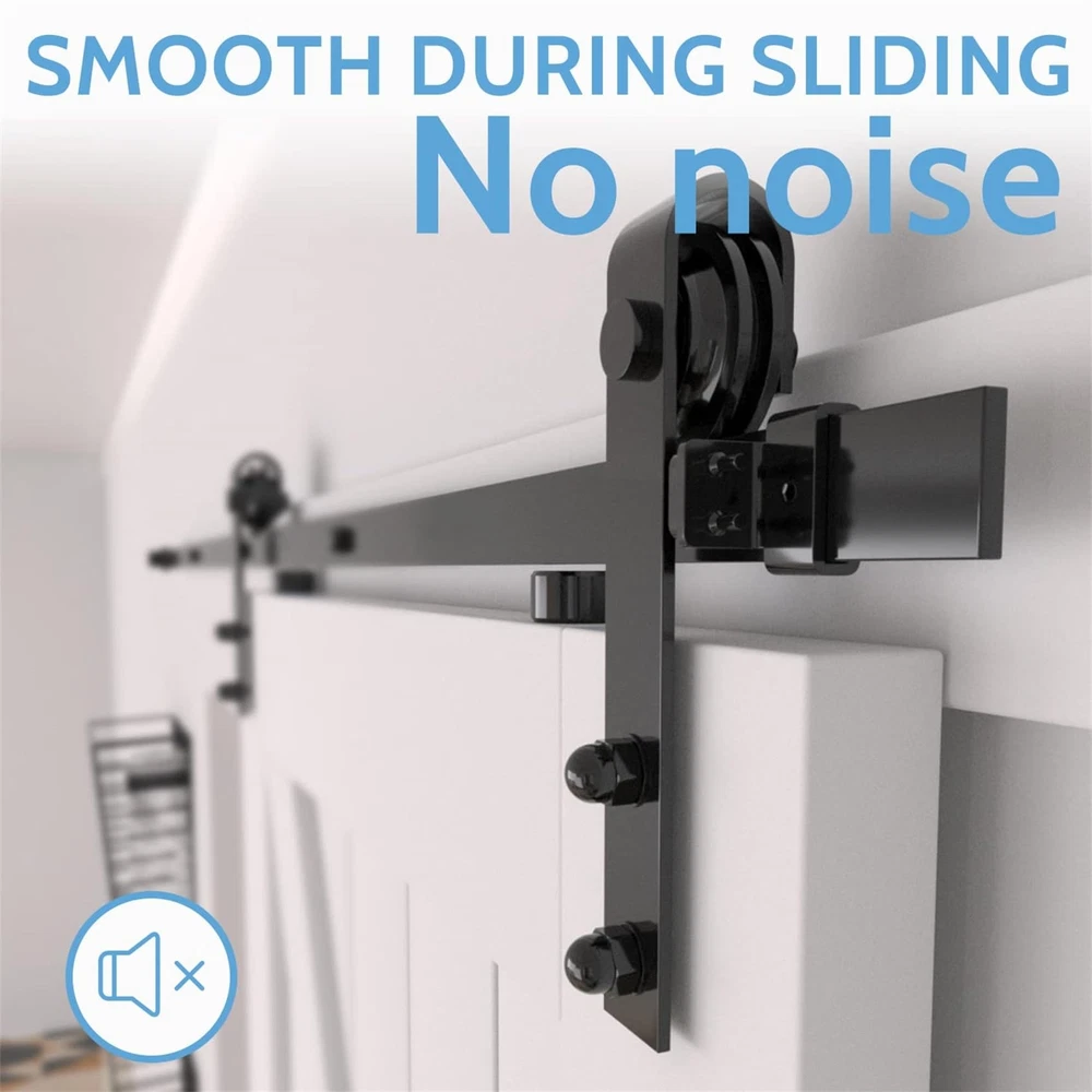Basic Info: Barn door hardware kit maximum hold barn door for 265 lbs, Fit for door panel thickness from 1.375" to 1.75", Fit for door panel width up to 36"(door not included). Strong and Durable: Barn door track are made of high standard carbon steel with black powder coating, This greatly increases the robustness of the barn door track and makes it water, dust and rust resistant, all attributes that allow the entire barn door hardware kit to maintain long-term stable operation. Smooth and Quiet: Sliding door kit is based on the POM made wheels(2 bearings inside wheel), which allows the barn door system to slide more silky smoothly and quietly and does not easily cause wear and tear on the track. Less Space Ocuupy: Compared with normal sliding doors, barn doors and hardware included are more space-saving, the space behind your door is not bound, you can easily stack items behind the door, it is your space becomes more neat, this is the biggest reason why we choose barn door system. What Included: 5* barn door track(combine to 6ft), 2* barn door rollers, 2* door stoppers, 2* anti-jump pads, 1* floor guide, 1* maunal. Incase you get any confusion on installation or missing parts ,kindly contact us via amazon ,we may get back to you in 24 hours. "ONLY BARN DOOR HARDWARE KIT FOR SALE, BARN DOORS ARE NOT FOR SALE."