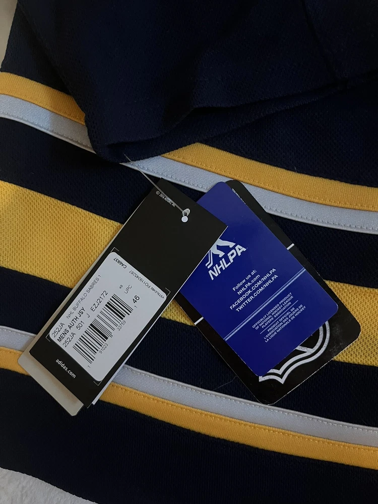 Officially Licensed: Yes Product: Jersey Pre & Post Season: Regular Season Team: Buffalo Sabres Brand: adidas Sport: Hockey League: National Hockey League (NHL) Player: Jack Eichel Color: Blue Gender: Men Size: 46