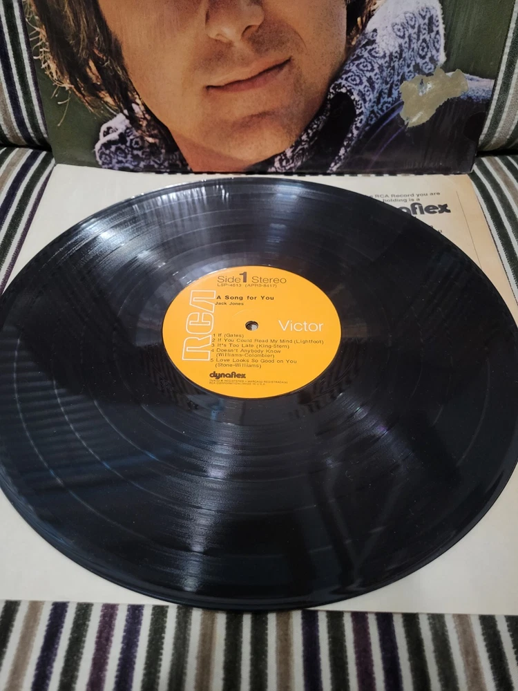 This Jack Jones LP, titled "A Song For You," is a first edition released in 1971 by RCA Victor. The 12" vinyl record features 33 RPM speed and high-fidelity sound, with excellent (EX) inlay and sleeve grading. The cardboard sleeve case type and black color add to the vintage look of this pop, easy listening, and jazz genre record. The LP includes original inner sleeve and cover, making it a must-have for collectors. The record grading is near mint (NM or M-), ensuring excellent listening quality. This vinyl record is a great addition to any music collection and a perfect gift for a music lover.