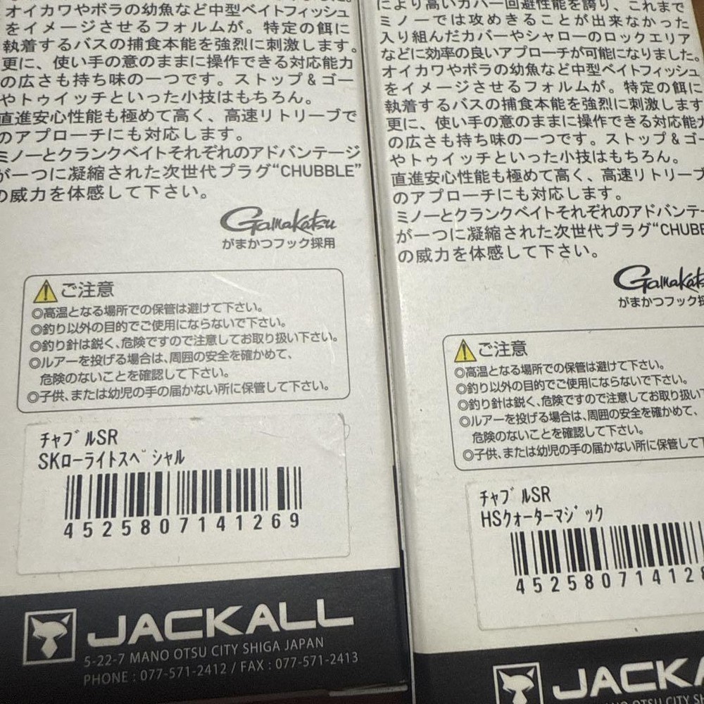 Item Title Fishing Lure Jackall Chubble Sr Lure 4 Pieces Payment Supports managed payments Please pay within 5 days after auction is finished. About Us We are located in Japan. It's our pleasure to make you happy by proposing our recommend item. If you have any questions or request about items, please feel free to ask us. International Buyers - Please Note: -Import duties, taxes, and charges are not included in the item price or shipping charges. These charges are the buyer's responsibility. -Please check with your country's customs office to determine what these additional costs will be prior to bidding/buying. -These charges are normally collected by the delivering freight (shipping) company or when you pick the item up - do not confuse them for additional shipping charges. -We do not mark merchandise values below value or mark items as - gifts - The US and International government regulations prohibit such behavior. Thank you for your understanding.