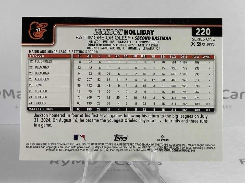 This 2025 Topps Series 1 Baseball Future Stars base card features Jackson Holliday. Please contact me if you have any questions. Combined shipping available