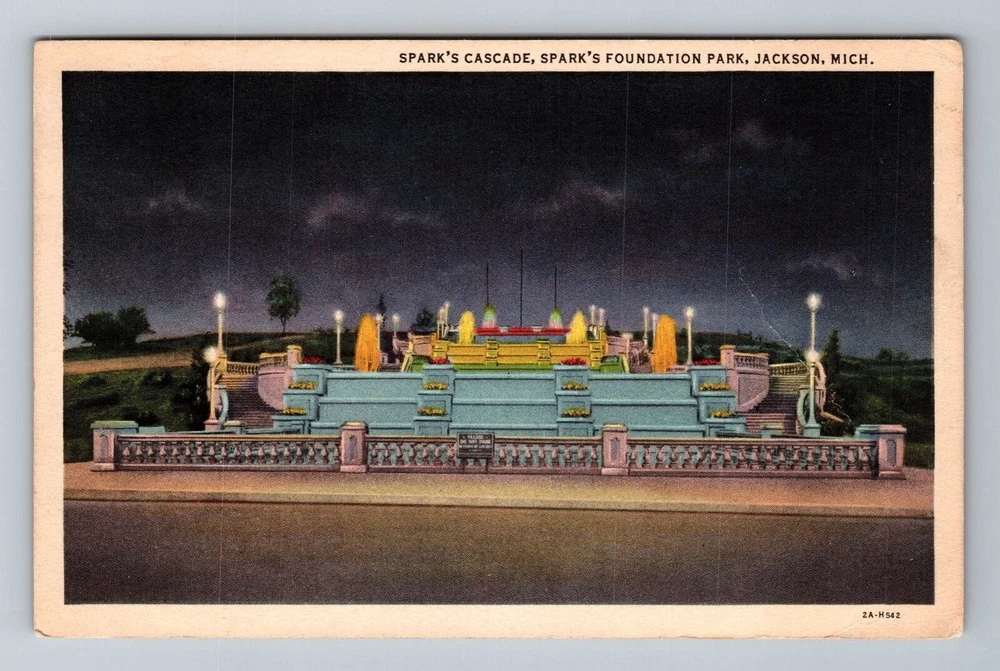 Jackson MI-Michigan, Spark's Cascade, Spark's Foundation Park, Vintage Postcard