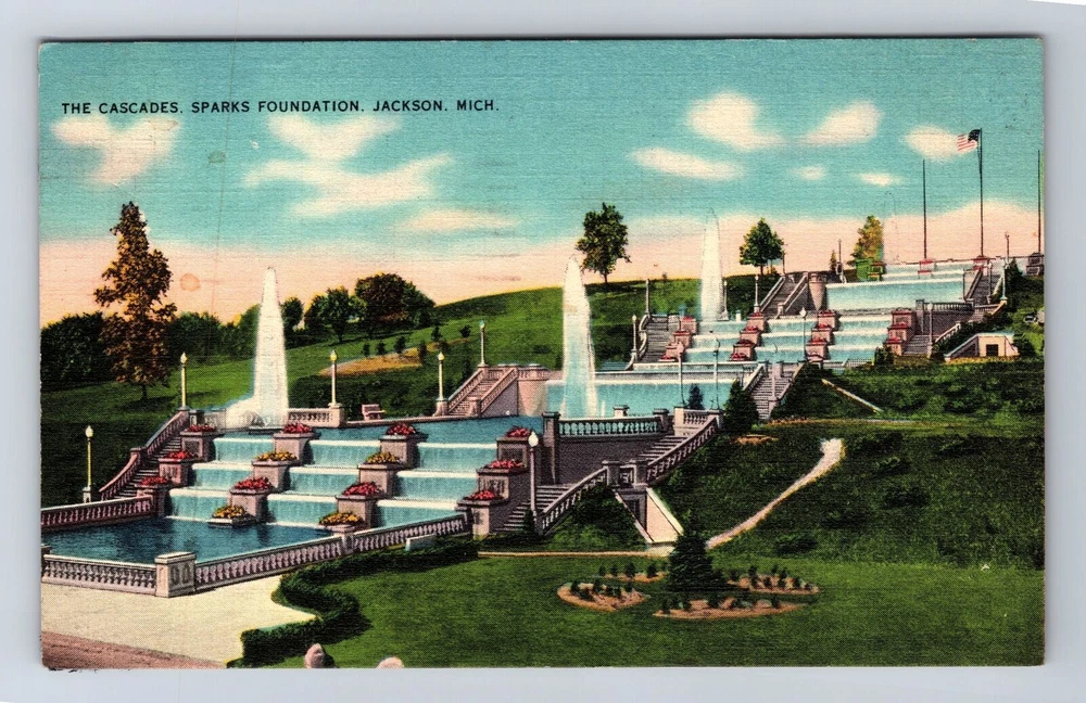 Jackson MI-Michigan, The Cascades, Sparks Foundation, Vintage c1940 Postcard