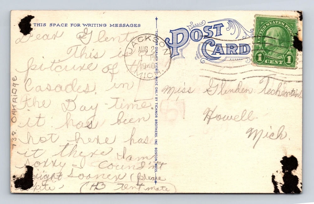 Original/Licensed Reprint: Original Country: USA City: Jackson Era: Vintage Subject: Cities & Towns Type: Printed (Lithograph) Theme: Cities & Towns Region: Michigan Unit of Sale: Single Unit Postage Condition: Posted Country/Region of Manufacture: Unknown