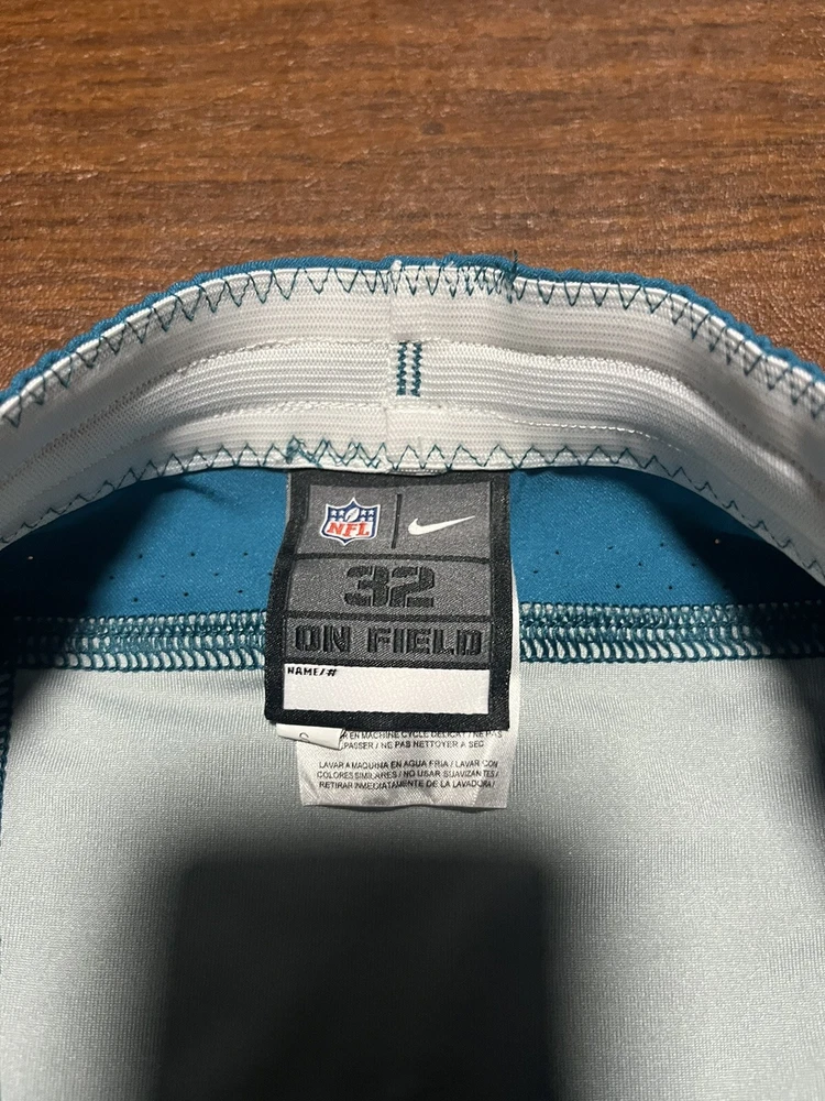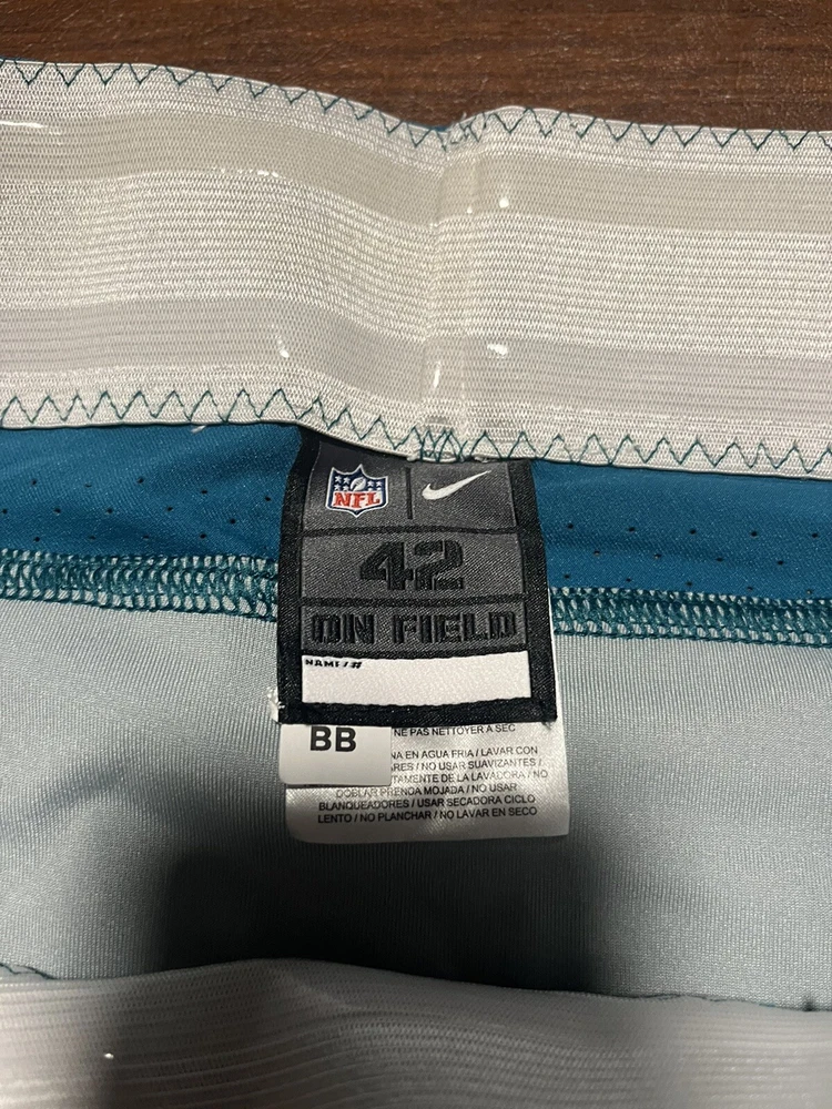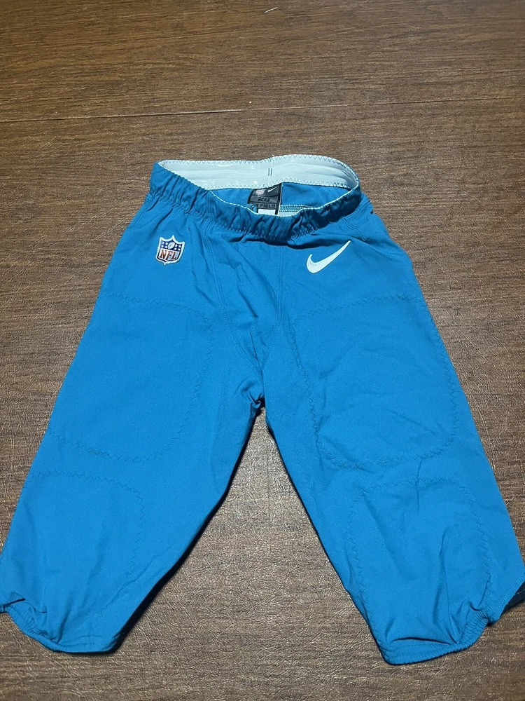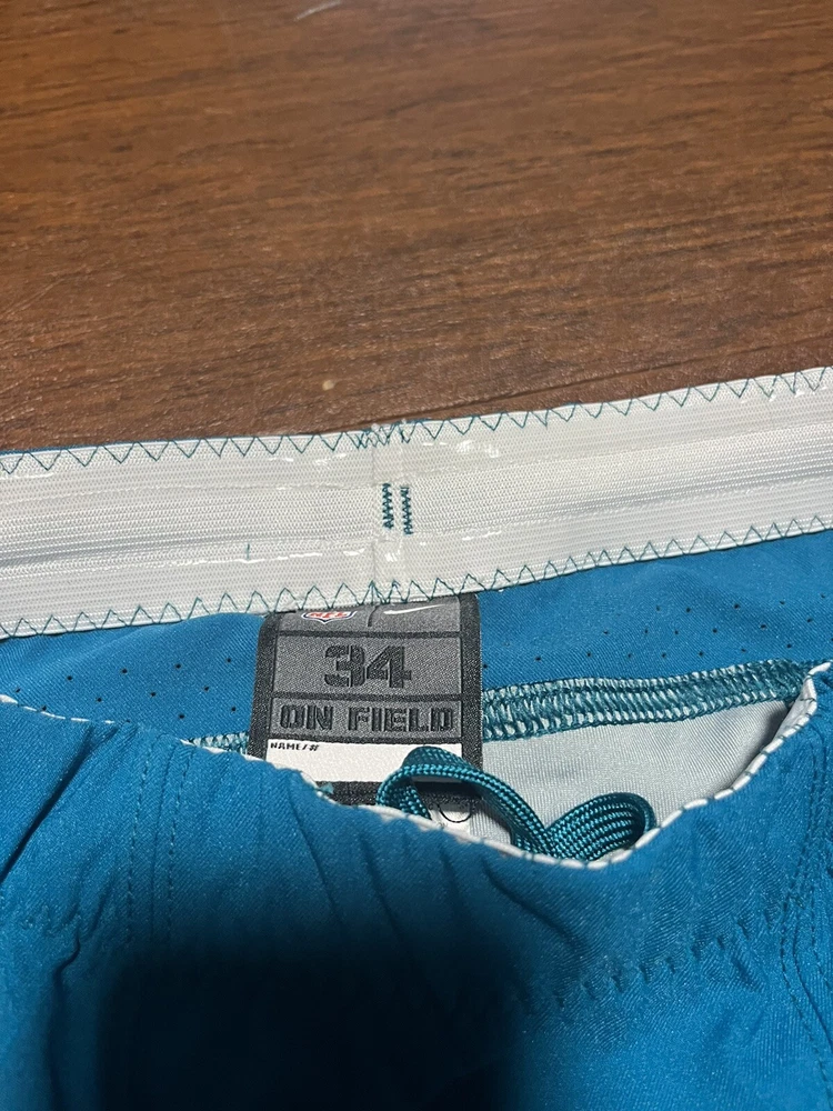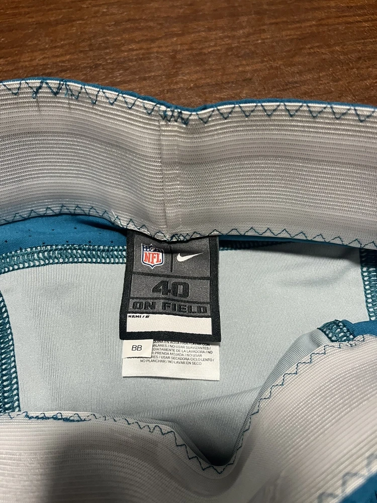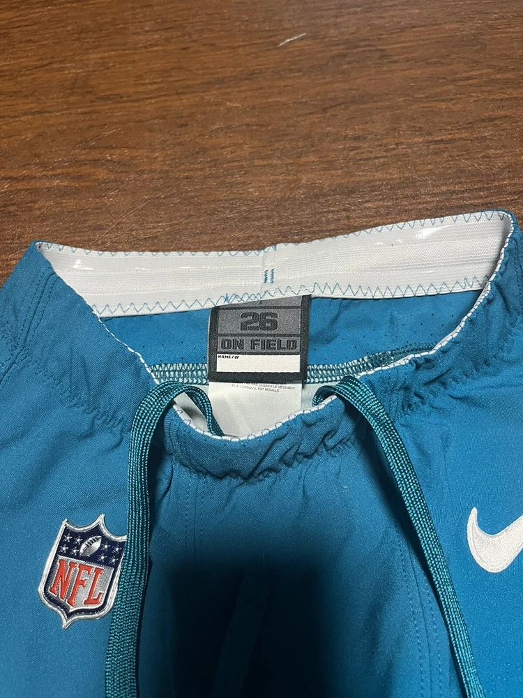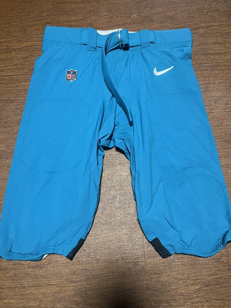 These pants are issued from the Jacksonville Jaguars . We have size 26,28,32,35,38 40,42,44and 48. Please email us to make sure we still have your size before you buy it. These are authentic pants that were never used on the field. These are perfect for mannequins or if you want to wear to practice or to a game. They have a drawstring and some comes with the belt Please message us any questions you might have. I will ship out within 48 hours and it will be to you within a week. This price is for ONE pair. We can make a deal if you would like to buy bulk Check our profile for other Jacksonville Jaguars memorabilia and Game used items