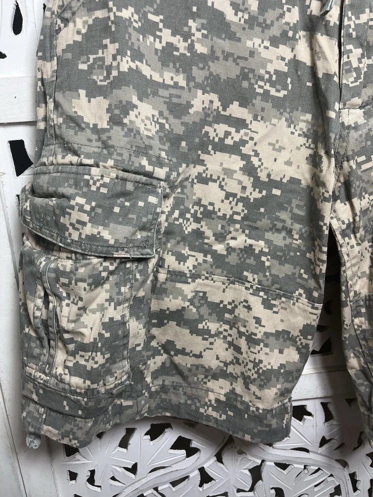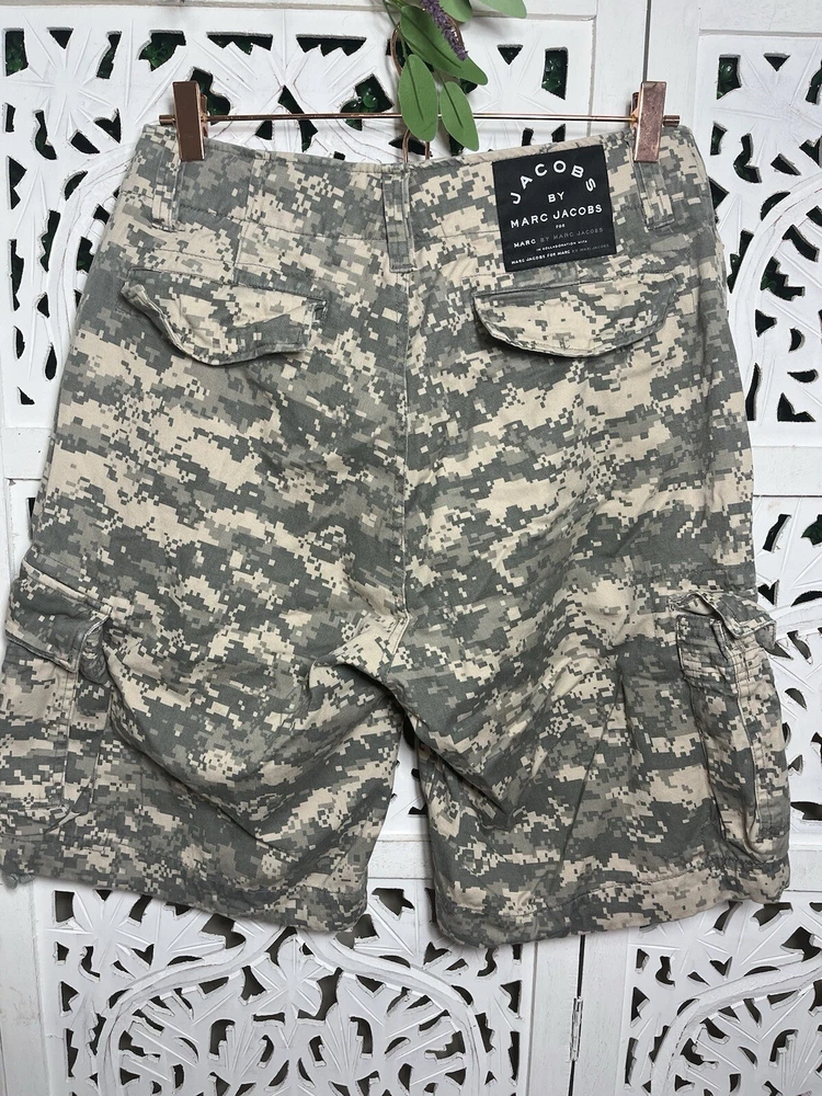 Jacobs by Marc Jacobs Men’s Camo Utility Military Cargo Cotton Shorts Size 27-31. Great Pre-loved condition. Approximate measurement laying flag waist 16 rise 13 hips 22.5 inseam 10.5 length 23.5