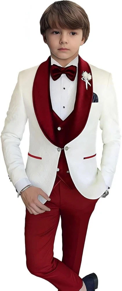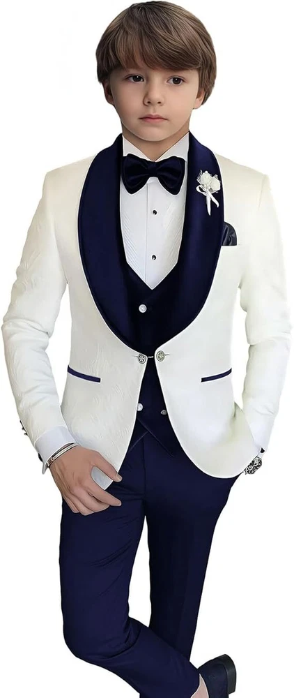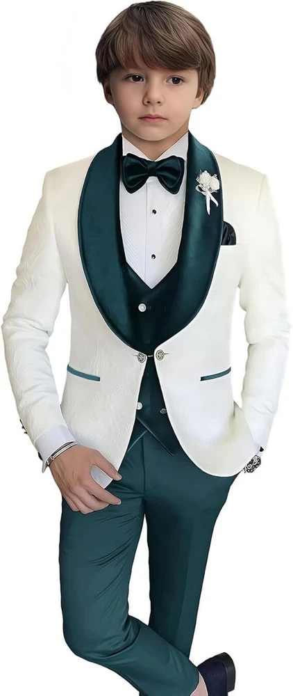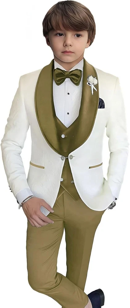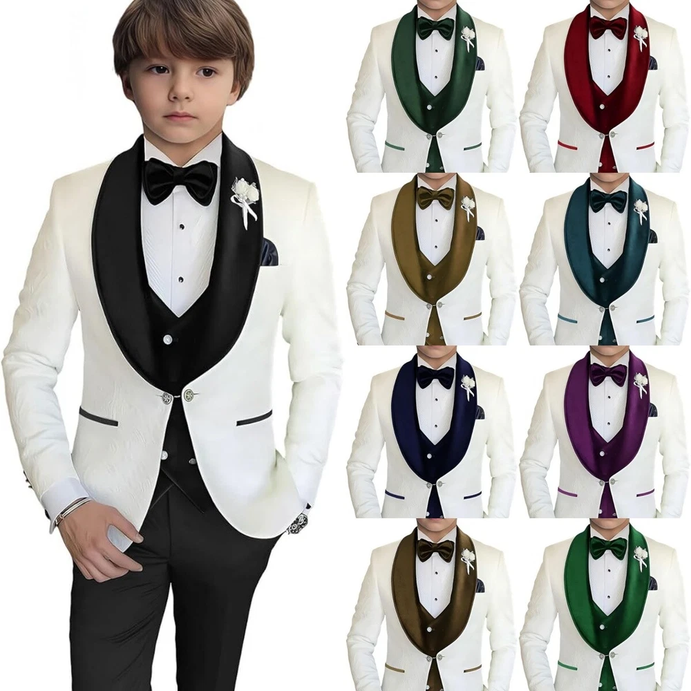 Boys Suit 3 Pcs Slim Fit Kids Tuxedo Suit Formal Wedding Outfit Blazer Vest Set