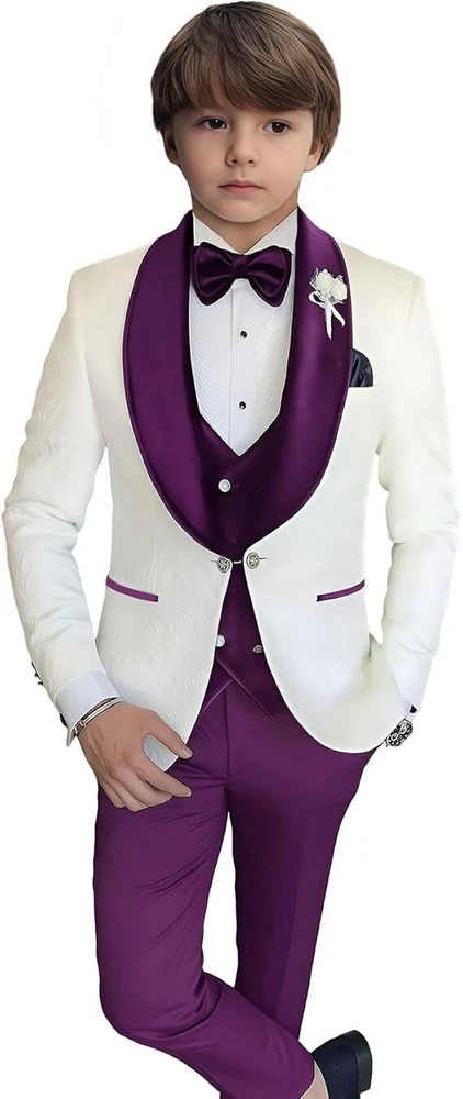 Jacquard Boys Suit Slim Fit Tuxedo for Boys 4 Pieces Kids Tuxedo Wedding Suits
