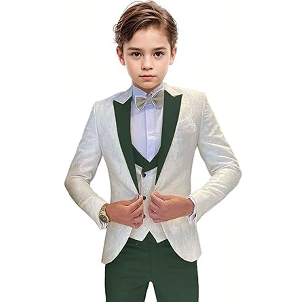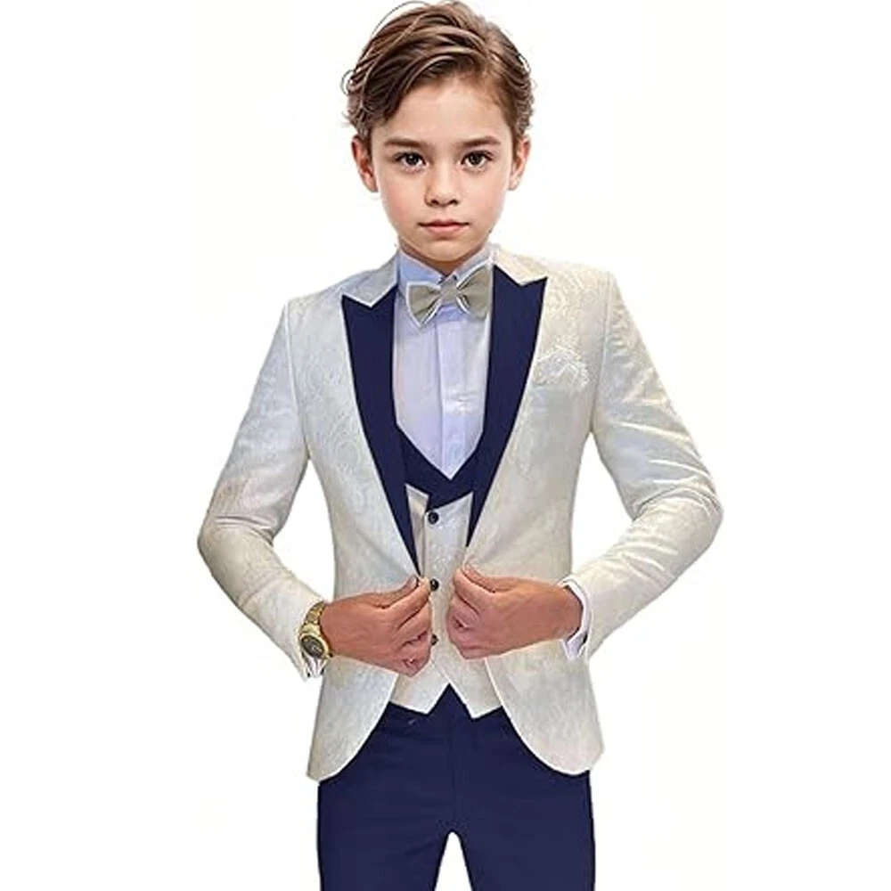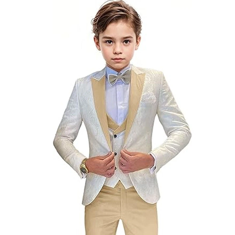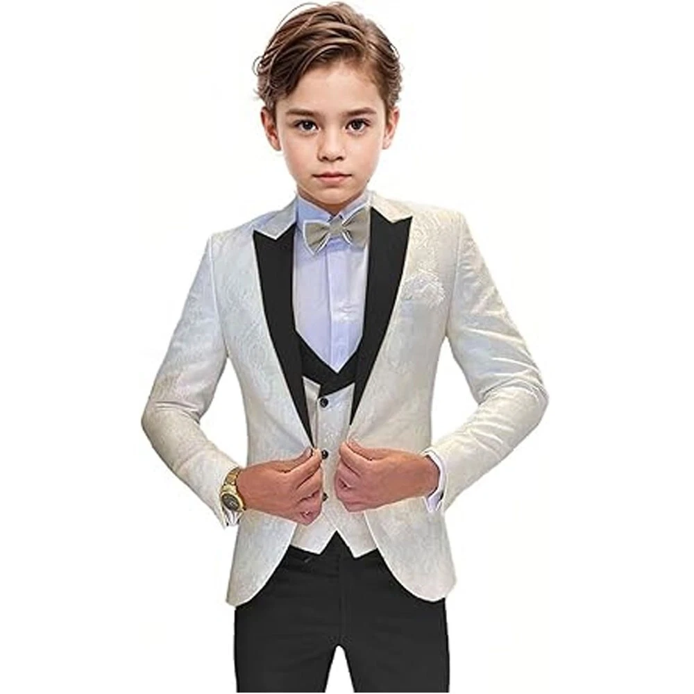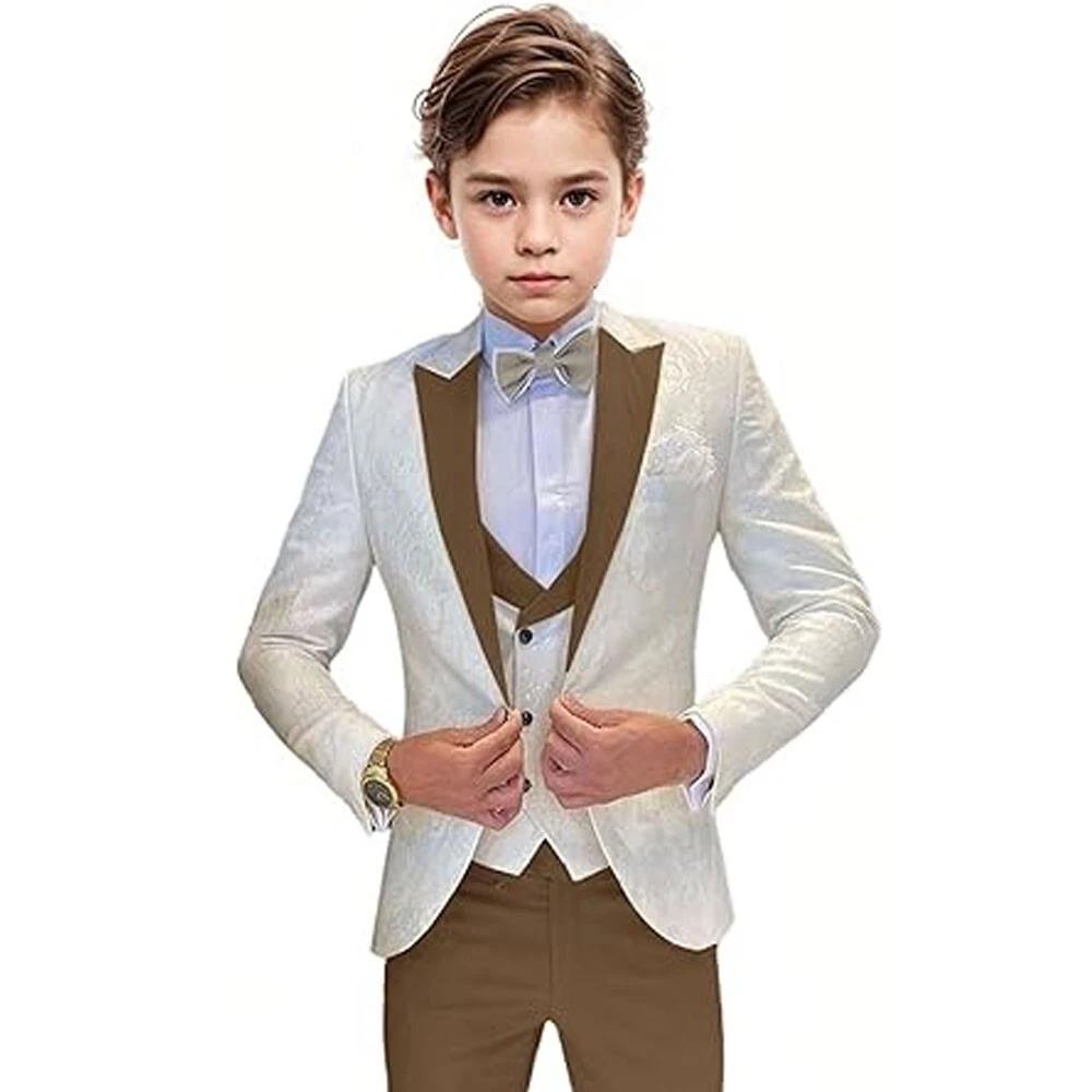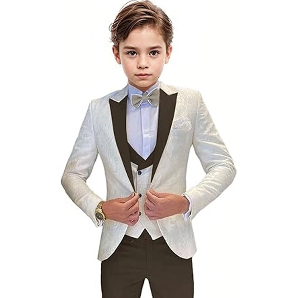 Jacquard Satin Boys Tuxedo Suit Slim Fit 3 Piece Suit Wedding Ring Bearer Outfit